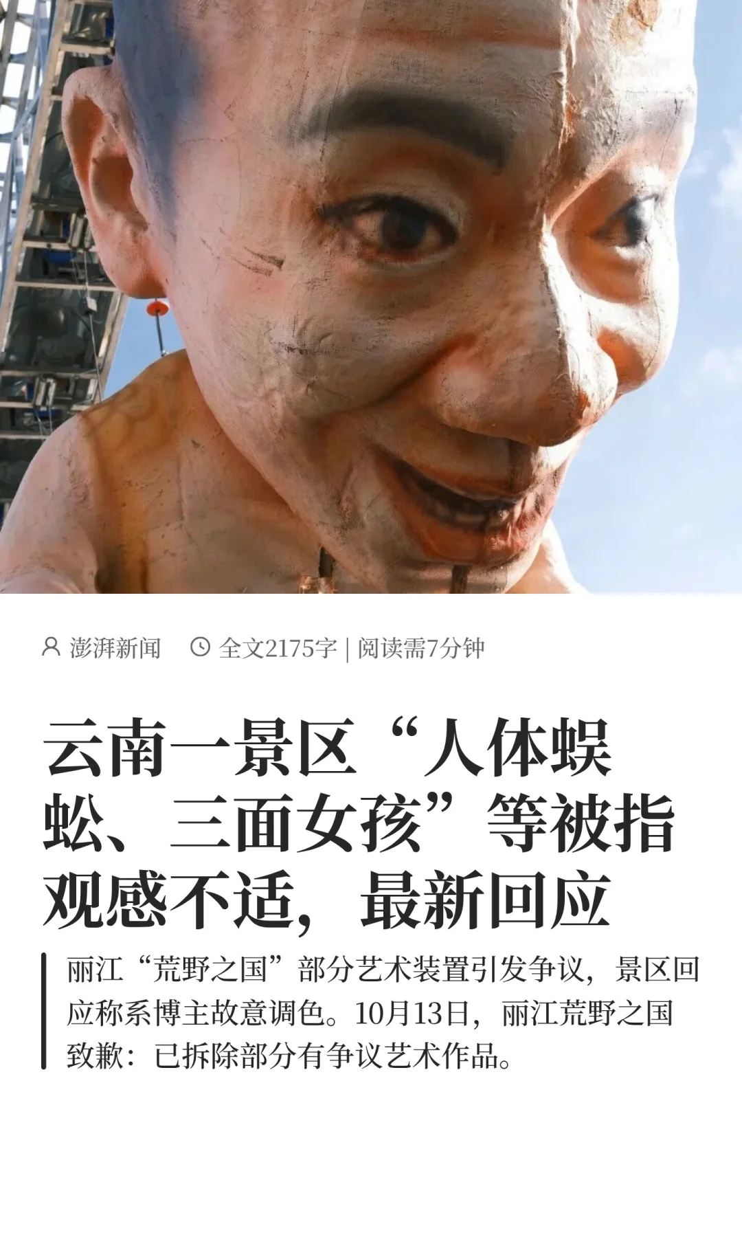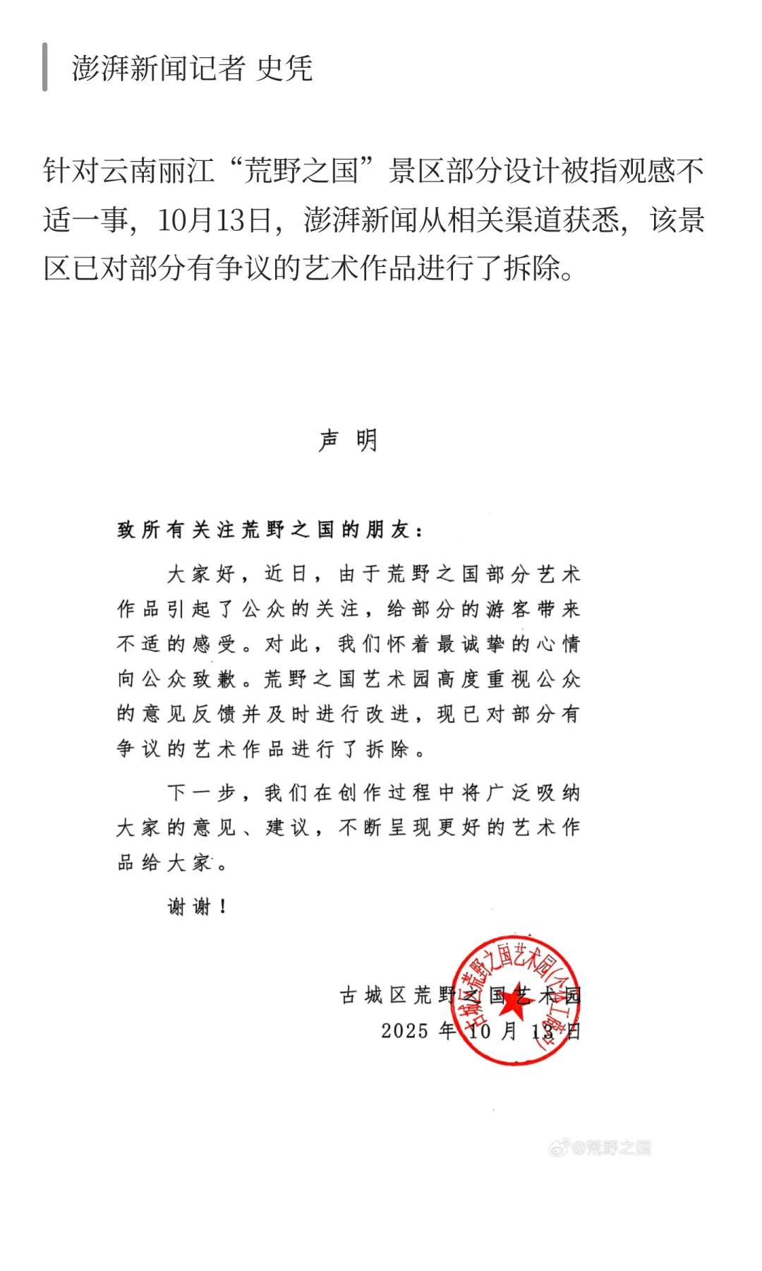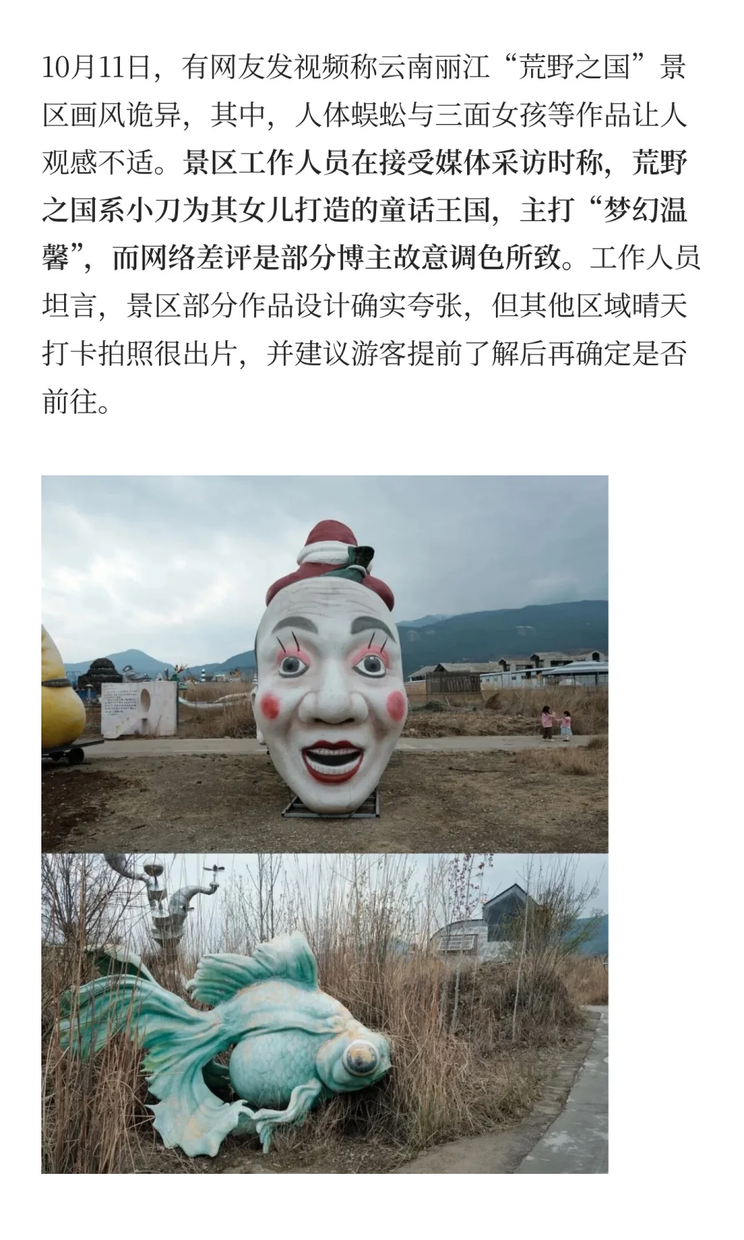 丽江一景区致歉:已拆除部分有争议艺术作品