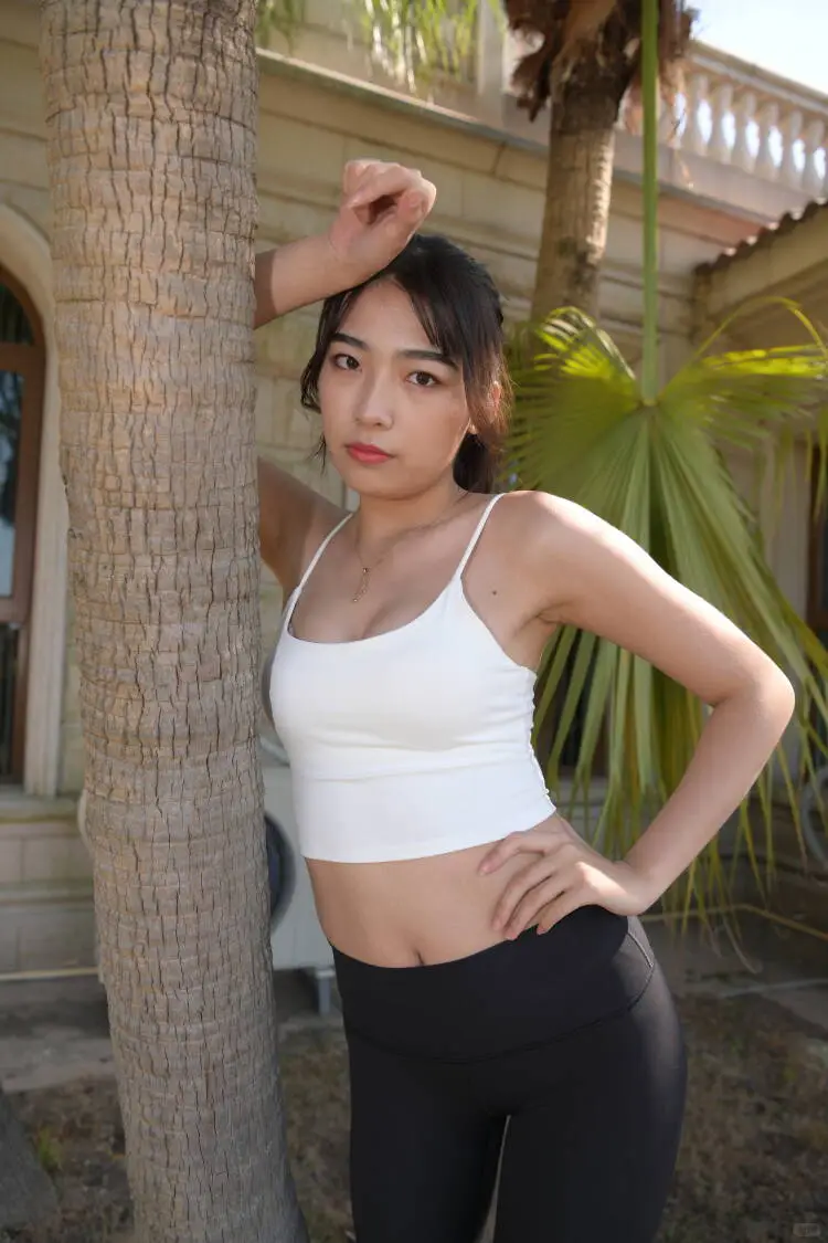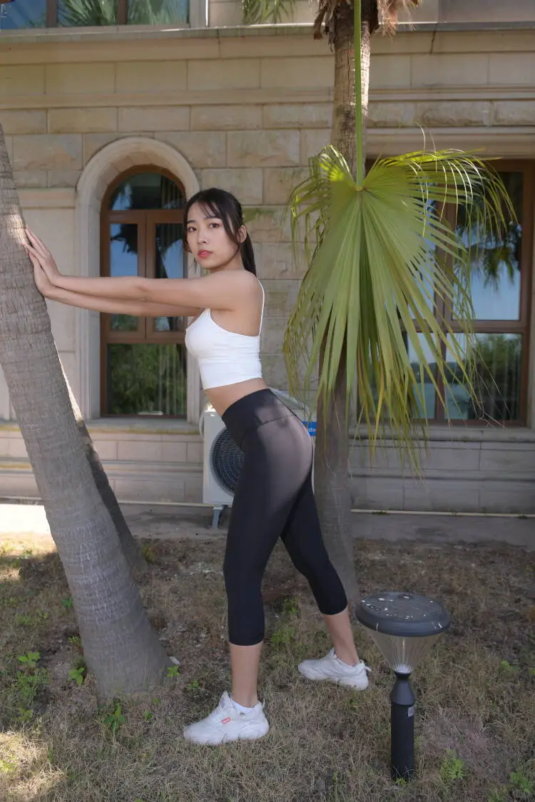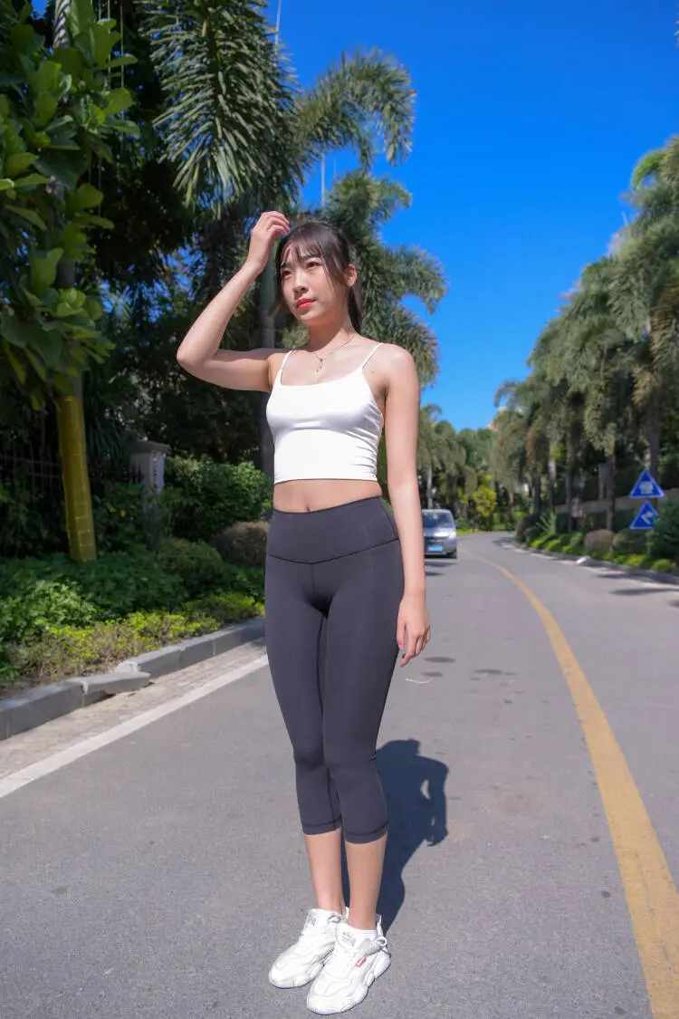 街拍黑色瑜伽裤的长发女孩