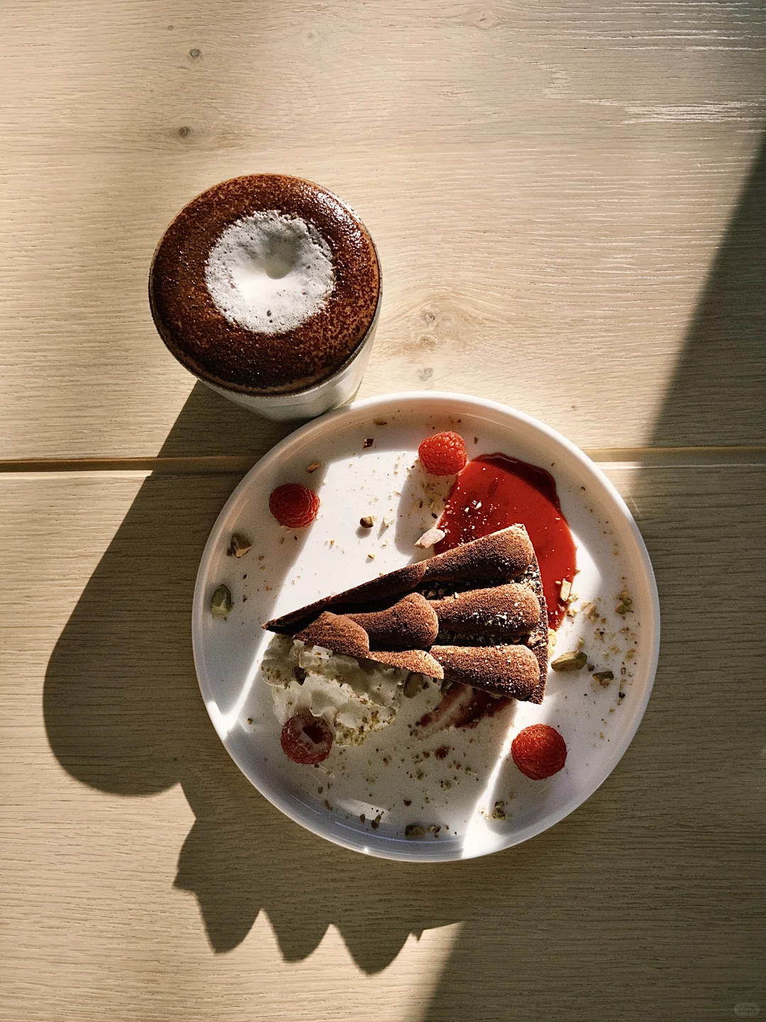 最近对咖色有点上头,可能是因为看着好吃又暖和吧,再配上一杯浓浓的热咖啡和巧克力蛋糕,绝了!