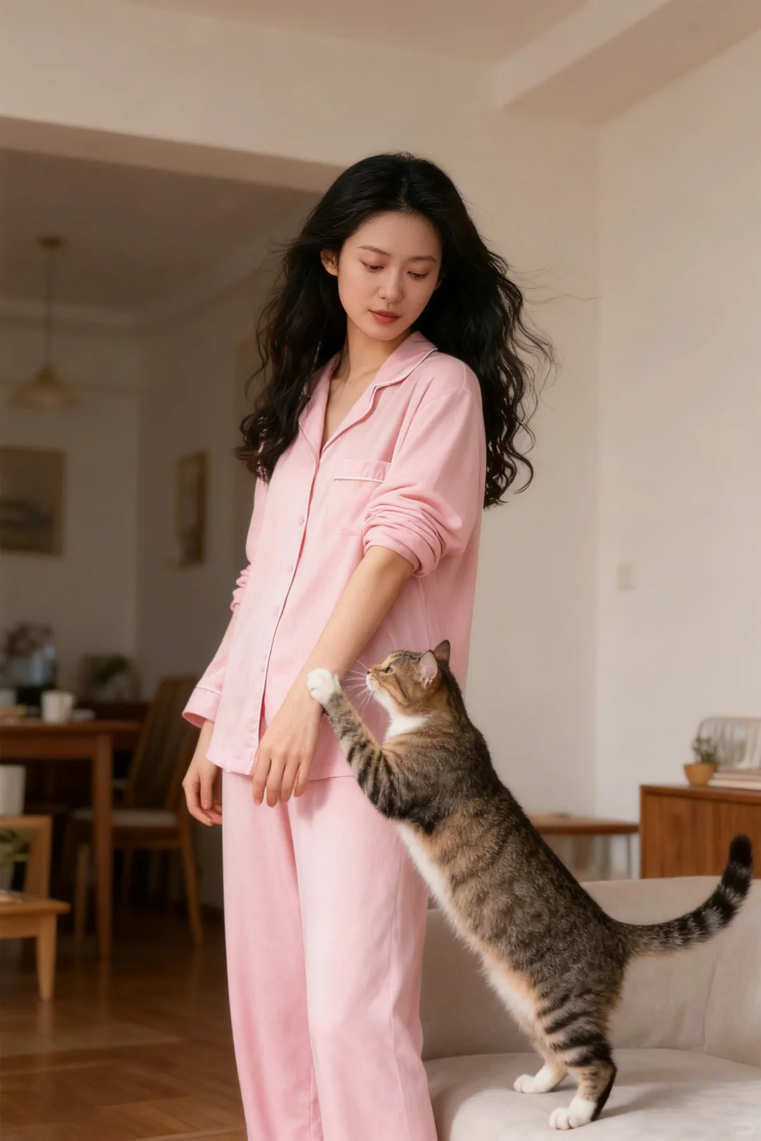 她真得好漂亮啊!穿着温柔的粉色睡衣,和猫咪互动的每一刻都像在发光。阳光洒进来,衬得她肌肤透亮,连发丝都带着温柔的光晕。和小猫依偎、玩耍,画面又治愈又美好,这样的居家时光,简直是把浪漫和温馨都揉进生活里啦~#怎么可以这么美 #她好像知道自己很可爱 #美女独自美丽 #长这么好看还不用上班 #她在闪闪发光诶 #美的毫不费力 #美到我的心巴 #美到心坎里 #美丽的女孩子 #美而不自知