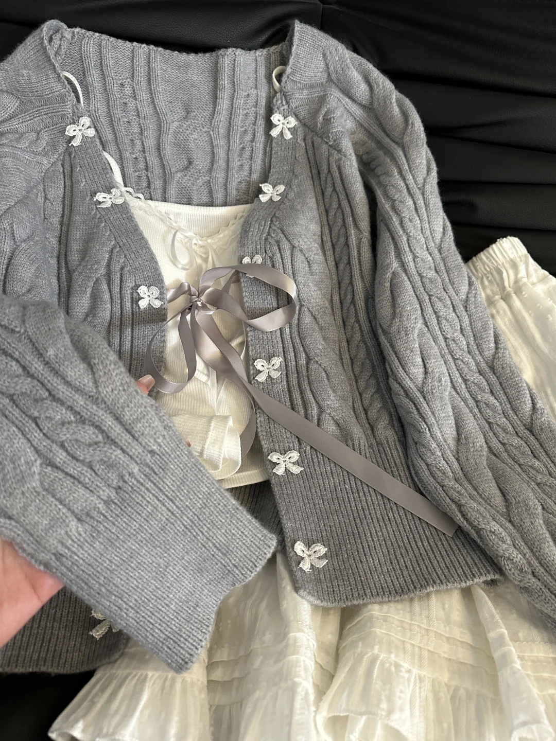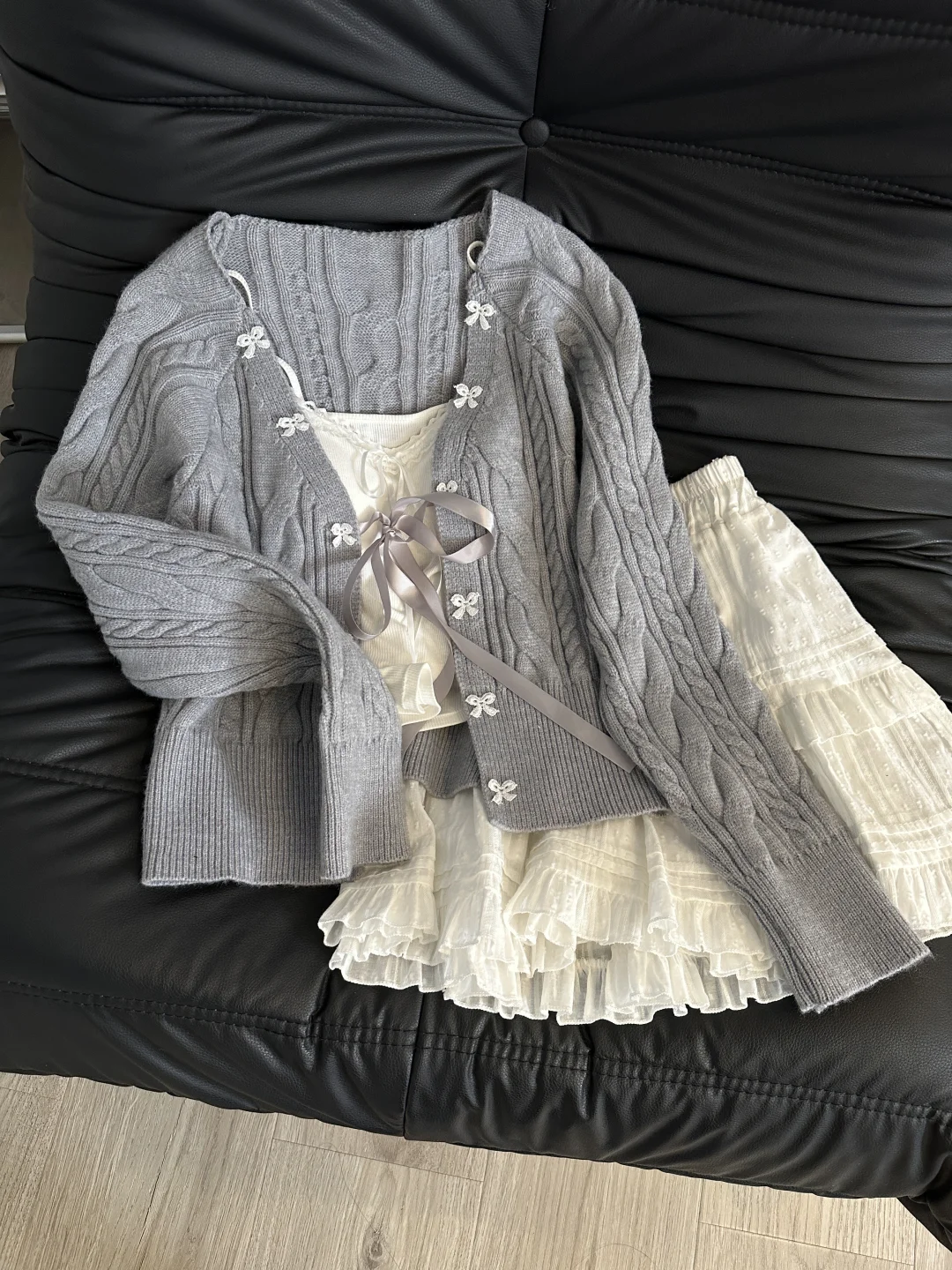 Live~韩系蝴蝶飘带开衫➕蛋糕裙🍂好适合秋天