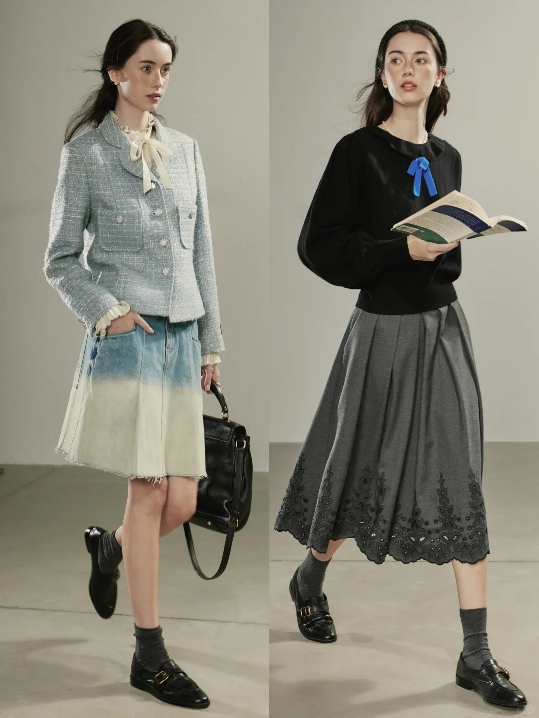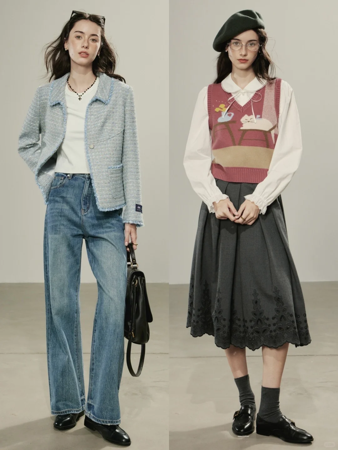JustBadtemper 2025早秋系列以“New Vintage”为灵感内核,糅合70年代中古质感与90年代复古摩登,编织出一季充满电影感与画报气息的秋冬衣章。本季游走于多种复古语境之间:意式风情的慵懒腔调、学院感的知性轮廓、miu系少女的乖巧与叛逆、嬉皮风的自由灵魂,以及小香风的精致格调,在灯芯绒、粗织羊毛与复古廓形中悄然融合。撞色细节与材质拼接增添视觉张力,整体氛围既有艺术系学姐的文雅书卷气,又暗藏荒野般的不羁生命力。