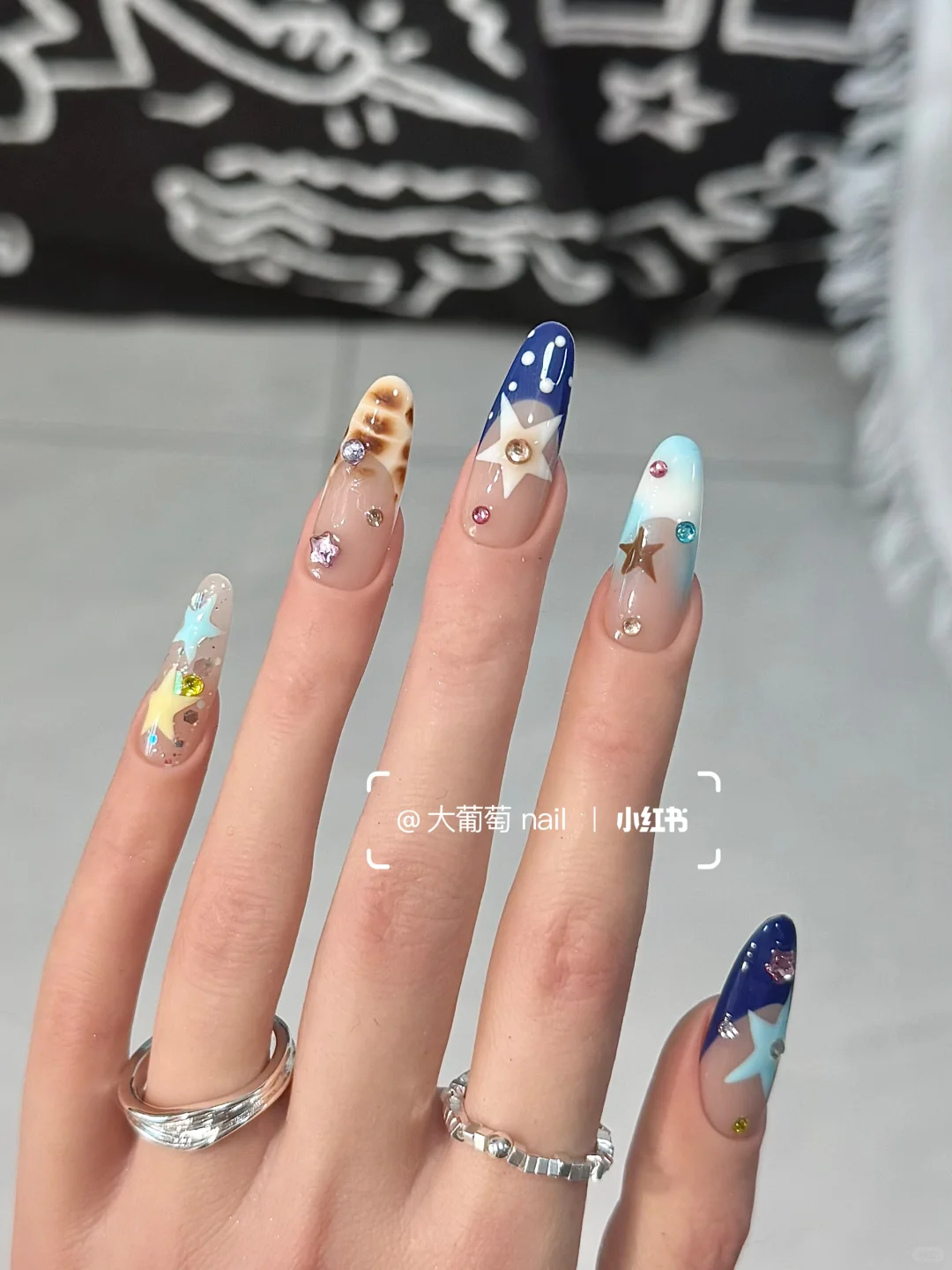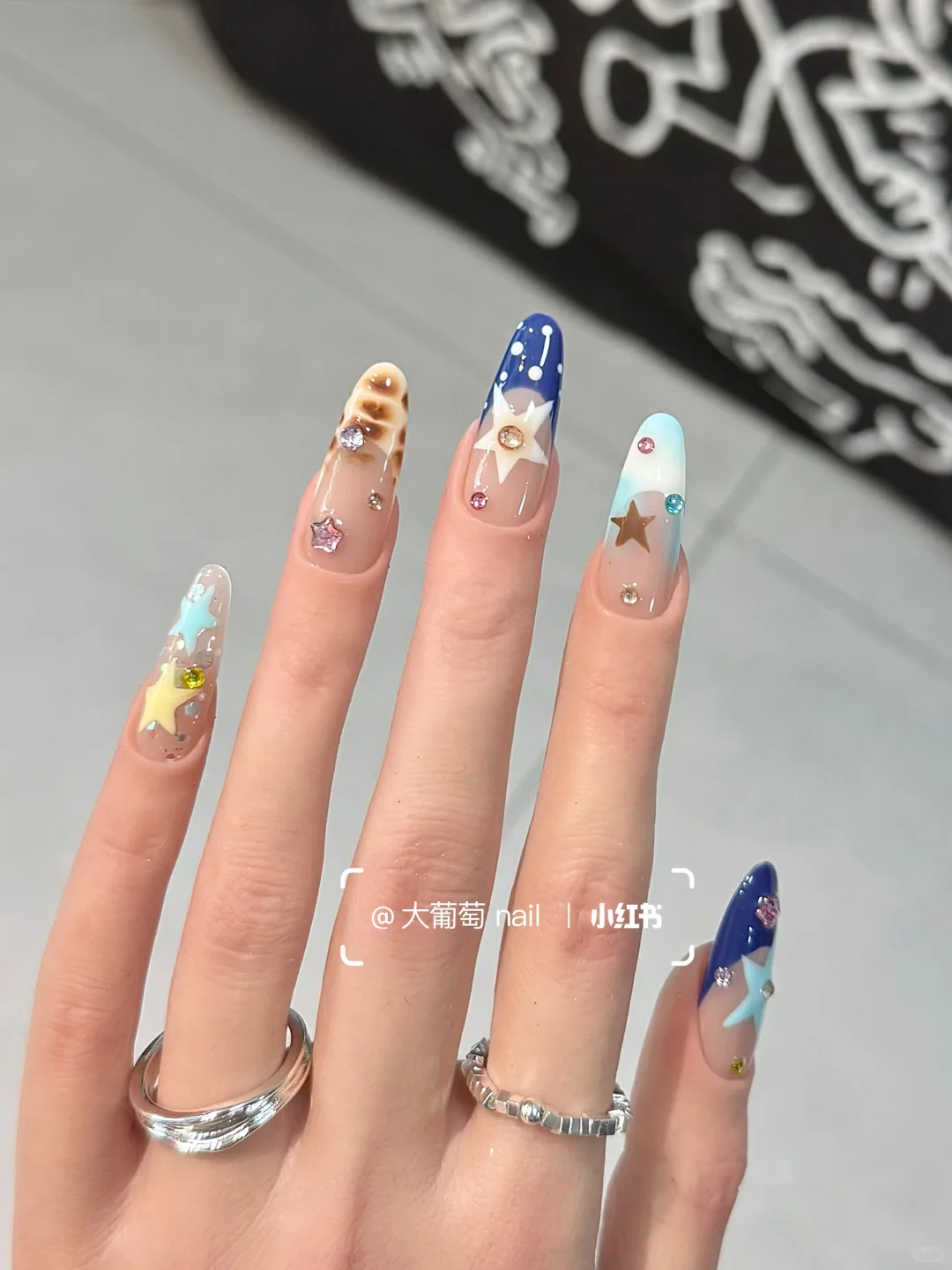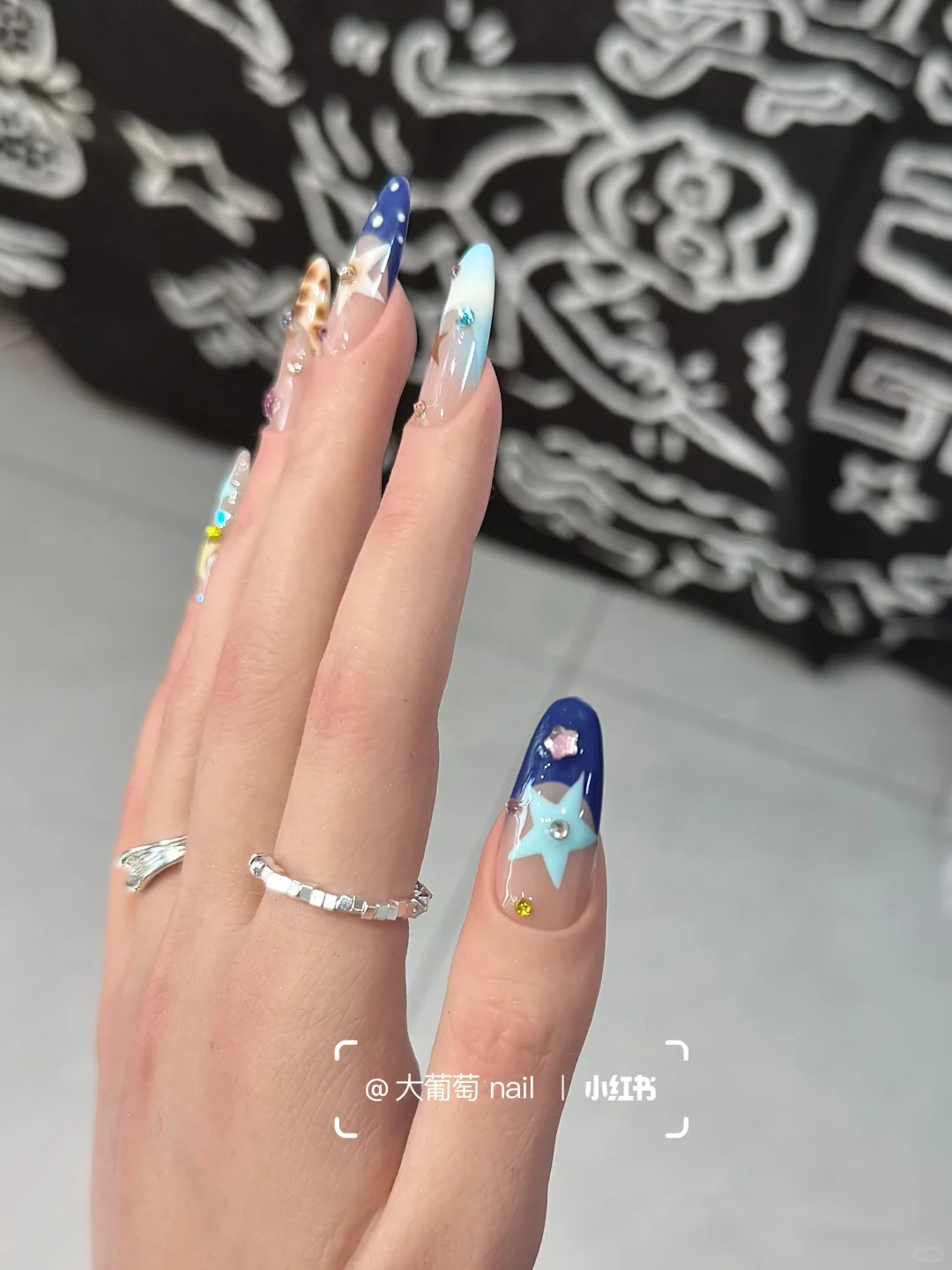 Nail♬♡ • 甜辣风晕染星星美甲🫧🩵
