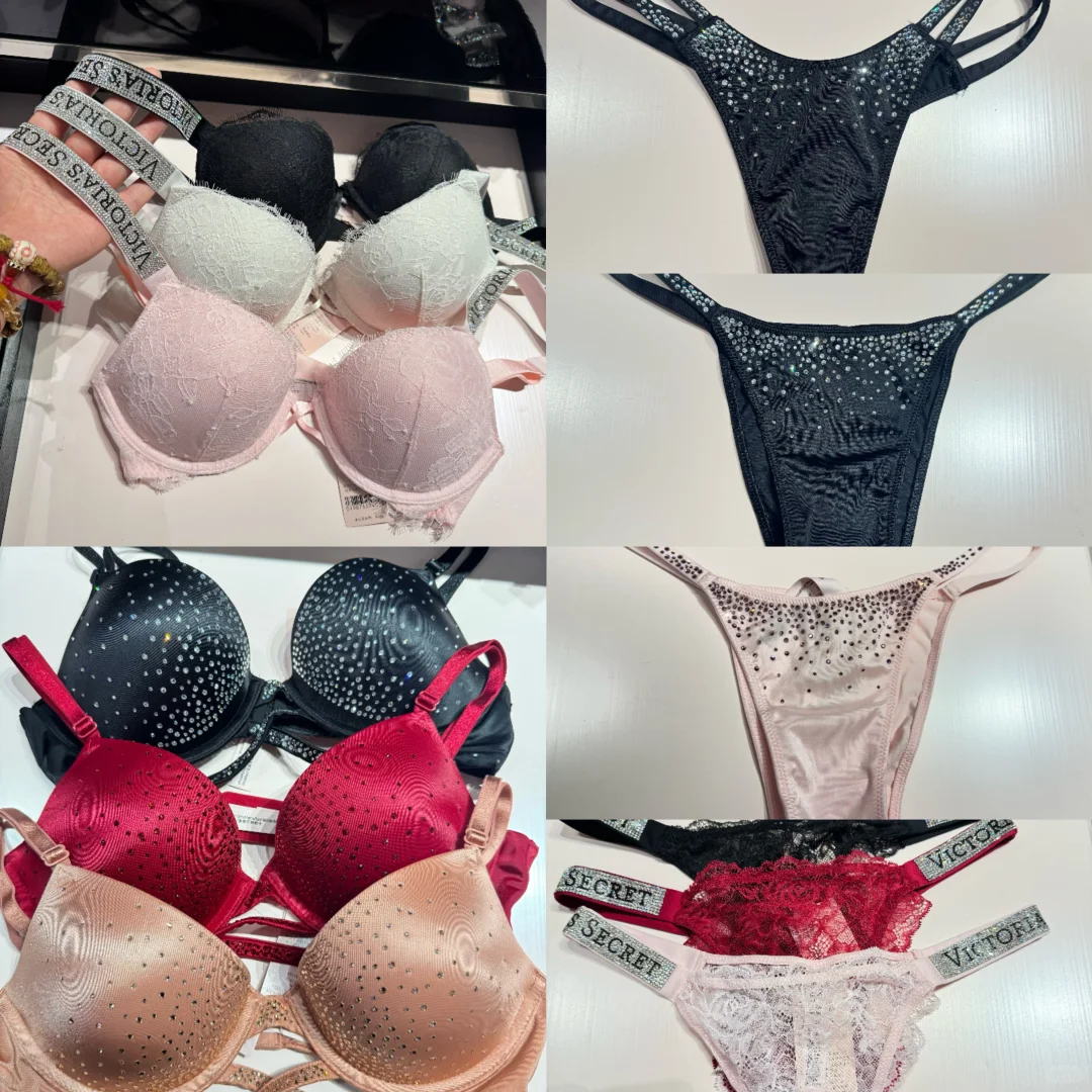 蕾丝款直接杀到心巴上——粉色蕾丝杯面甜到犯规,白色款纯欲感拉满,黑色款又飒又撩,每一件都像从高定秀场裁下来的~还有带钻款的内衣和内裤,blingbling的闪钻把灯光一衬,走在路上都像自带聚光灯,把“高级性感”焊在身上了谁懂✨