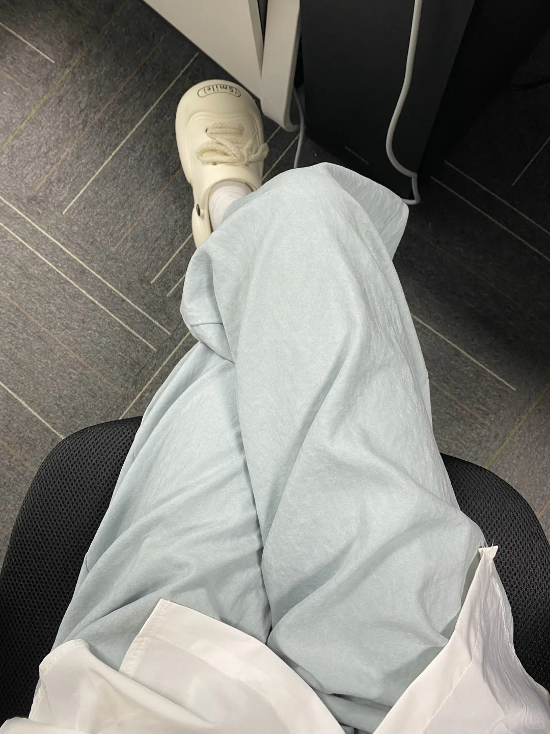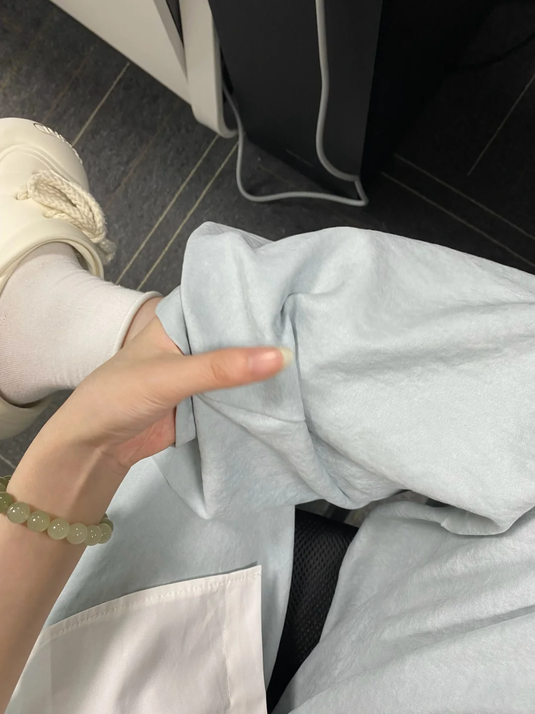 真的好喜欢这个雾霾蓝奶芙裤啊,穿来上班疯狂被同事夸,面料柔软垂感很足,真的好好看~