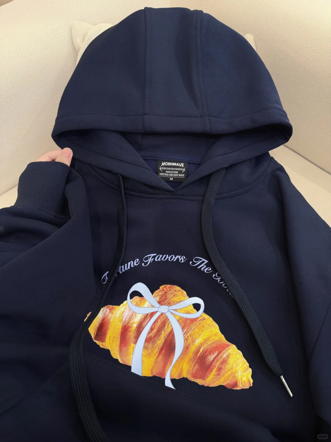 黄黑皮天菜!一件巨显白的藏蓝可颂连帽卫衣