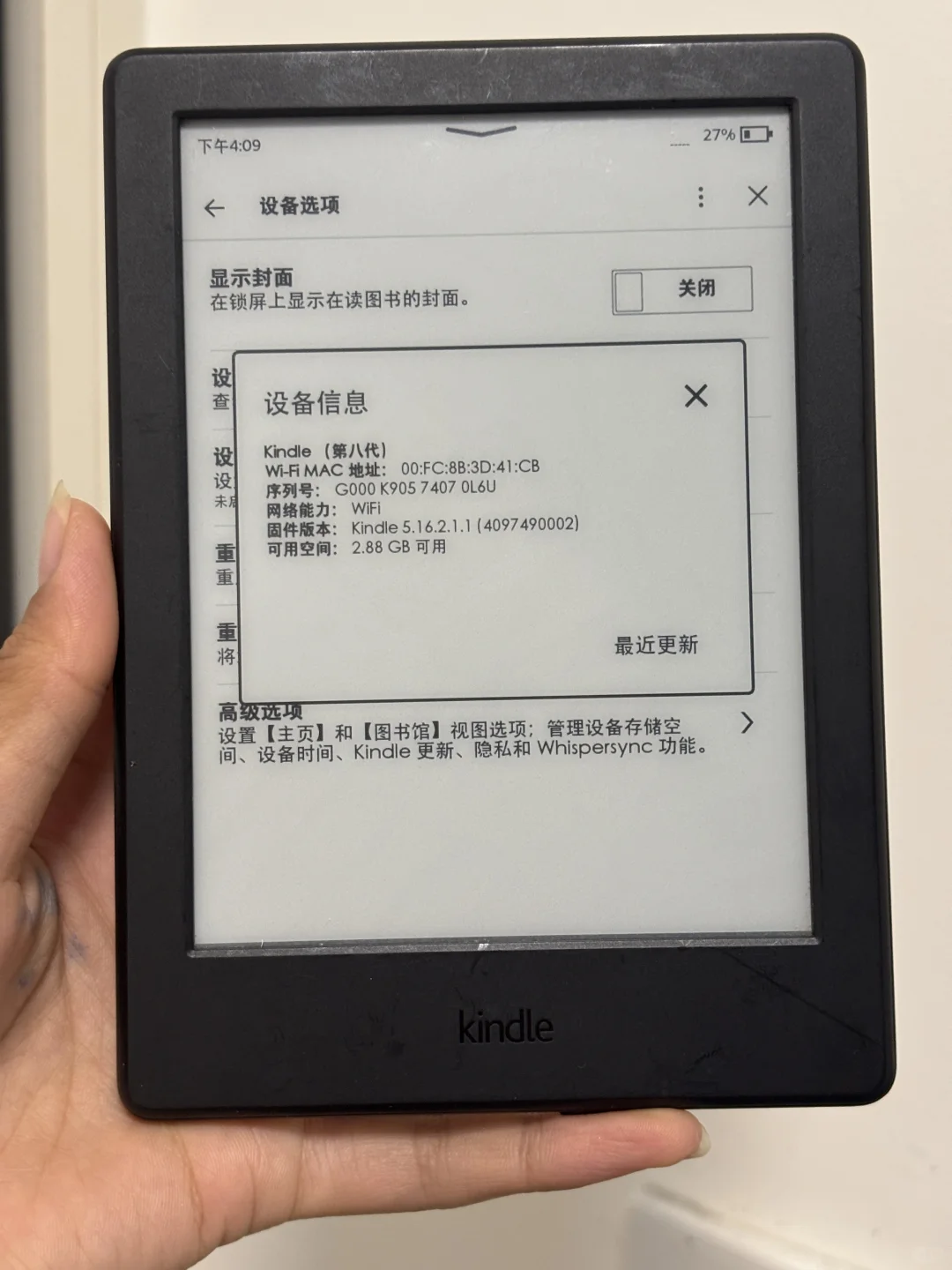 Kindle k8,无背光,功能正常,有使用痕迹,无背光