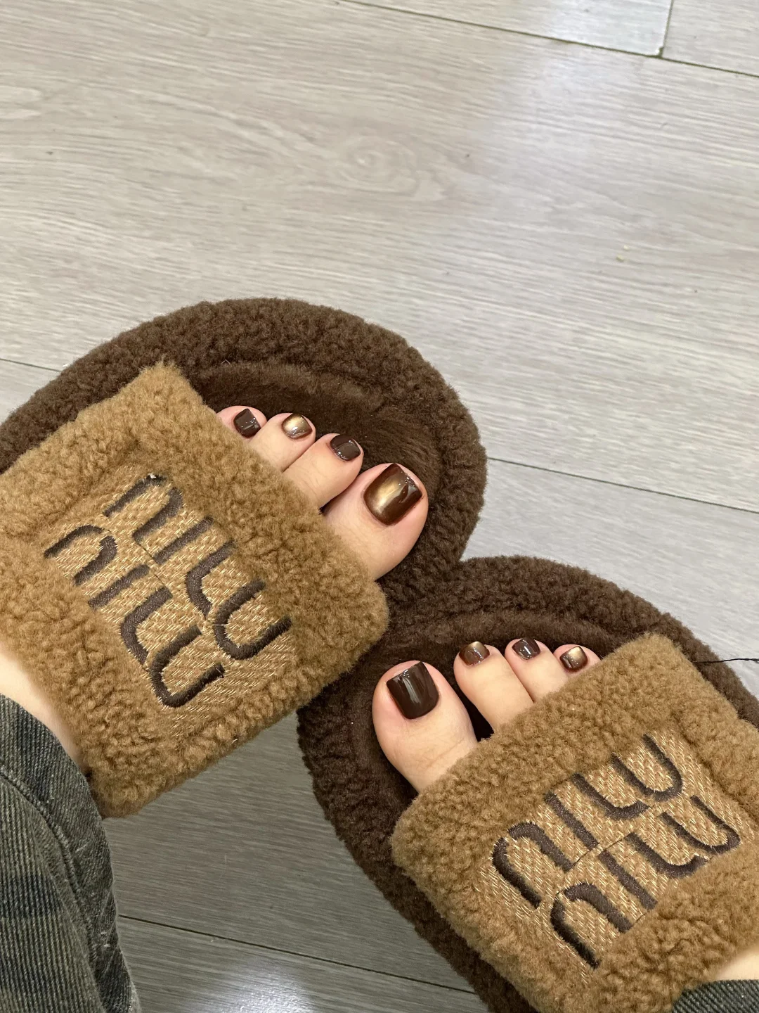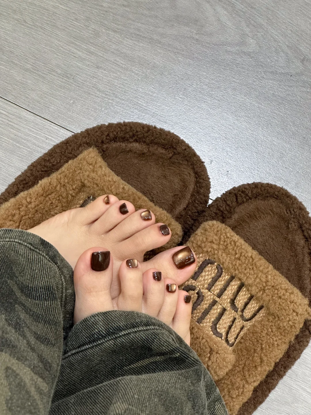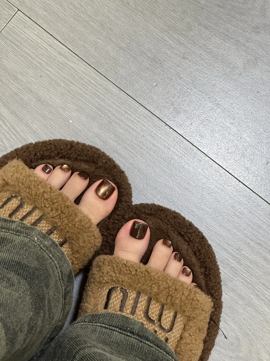 谁懂啊!咖啡棕美甲和Miu风毛绒拖锁死的瞬间