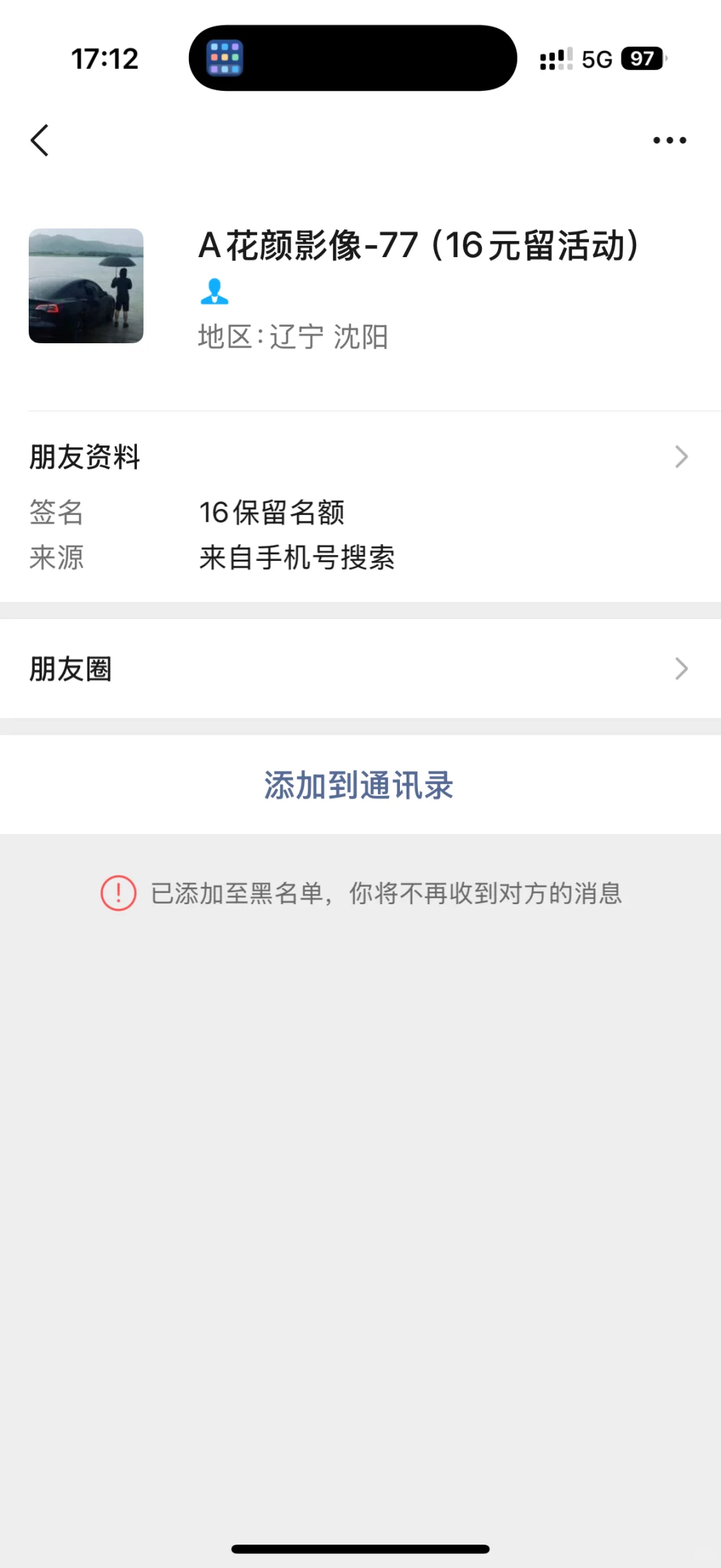 避雷这家,我是在抖音刷到的,就留了联系方式,一直加我,不同意就给我打电话,我问了活动后,我一看要先花钱预订我就感觉不太对劲,我就直接给删掉了,他还加我,一天给我打了六七个电话,我实在受不了了,我就接了,他问我什么情况,我说我不需要了还不行吗,至于吗你们,他说这不是你先咨询的吗,我是咨询了啊,我觉得不行还不能不接受,删除吗,赶上强买强卖了!
