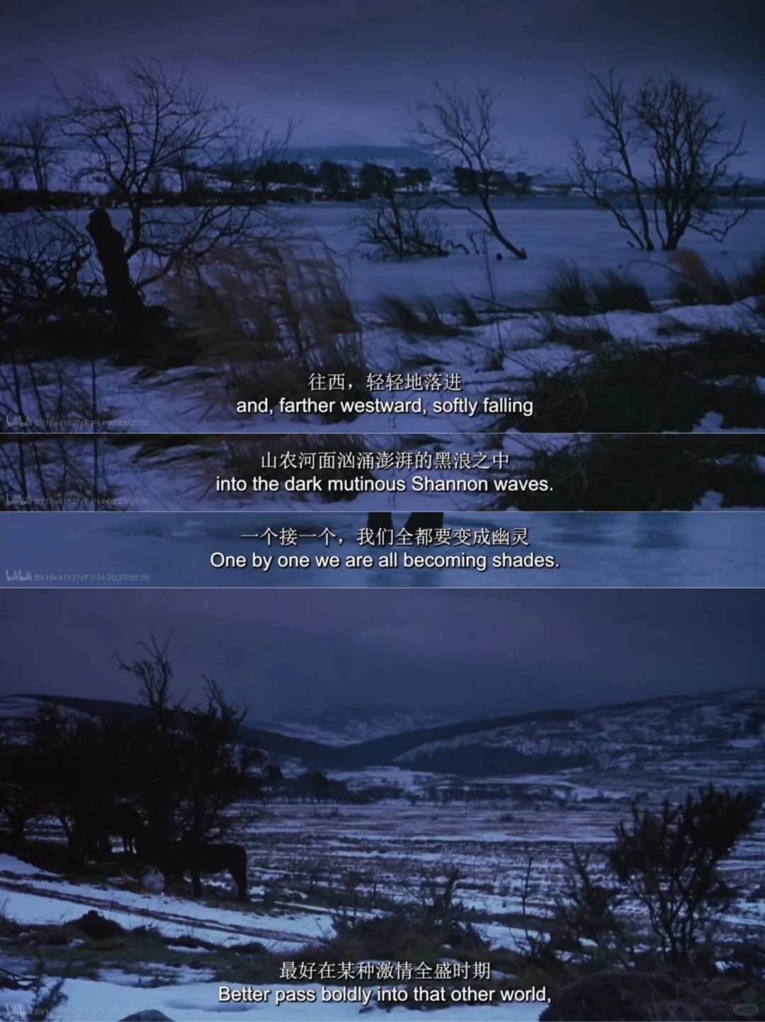 小蝴蝶会懂这种感觉吗?我们总在无数个时刻觉得孤独甚至悲哀。最近读了一本小说集,其中一篇叫《都柏林人》,它的氛围感太强了,“整个爱尔兰都在下雪”,而我似乎也被融入了大雪之中,我想要随之坠落,却又因痛觉常常清醒着。我试图通过酒精让自己到达另一个世界,因为命运往往不在掌控之中。