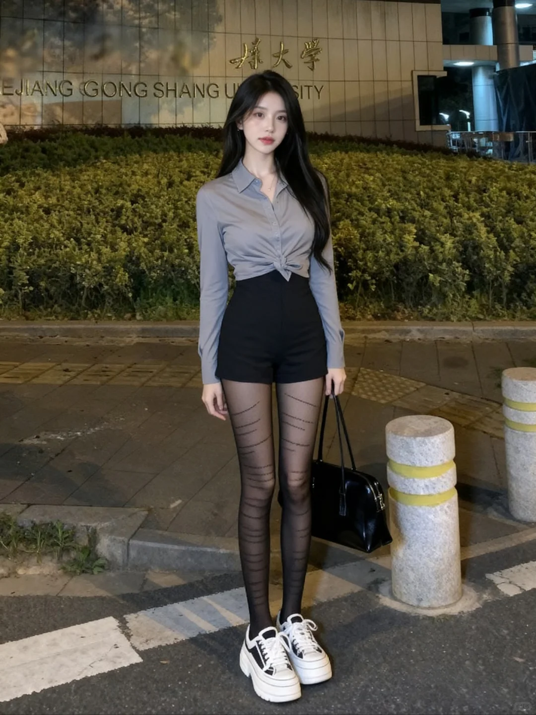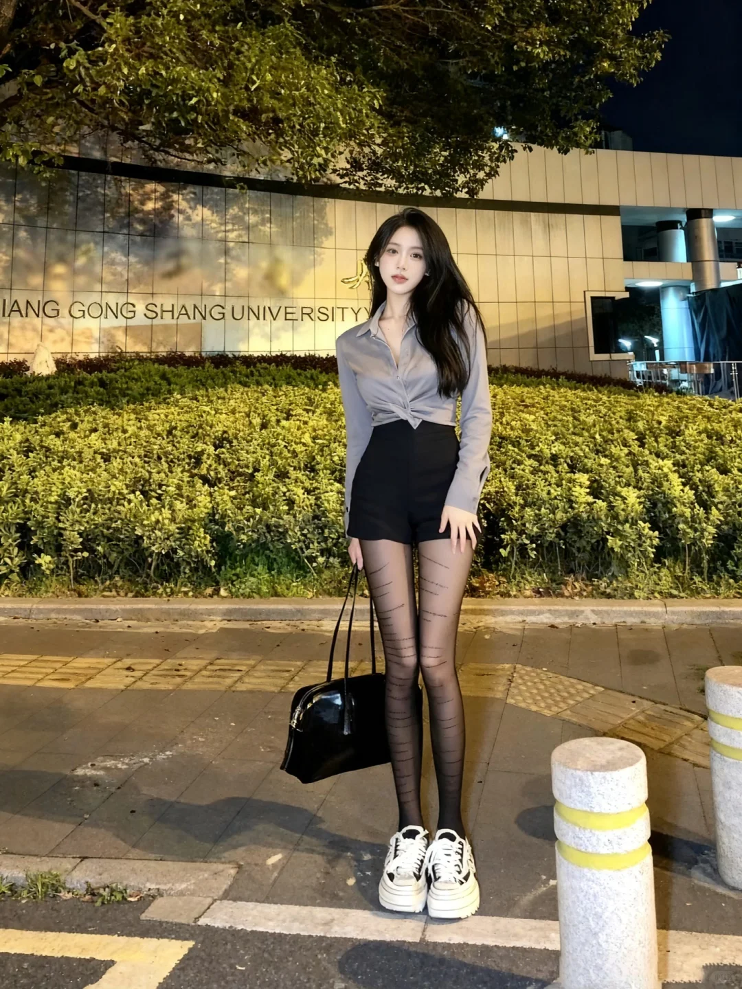 拎上漆皮大包去逛校园,路灯下随便拍都像电影截图!