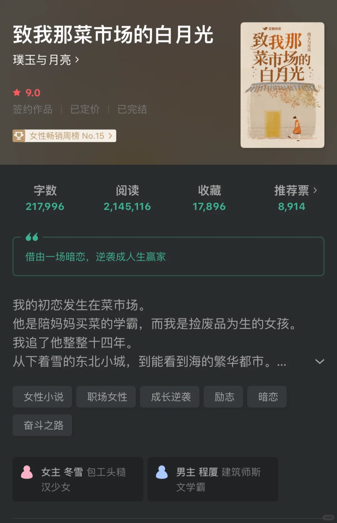 2️⃣《致我那菜市场的白月光》by璞玉与月亮