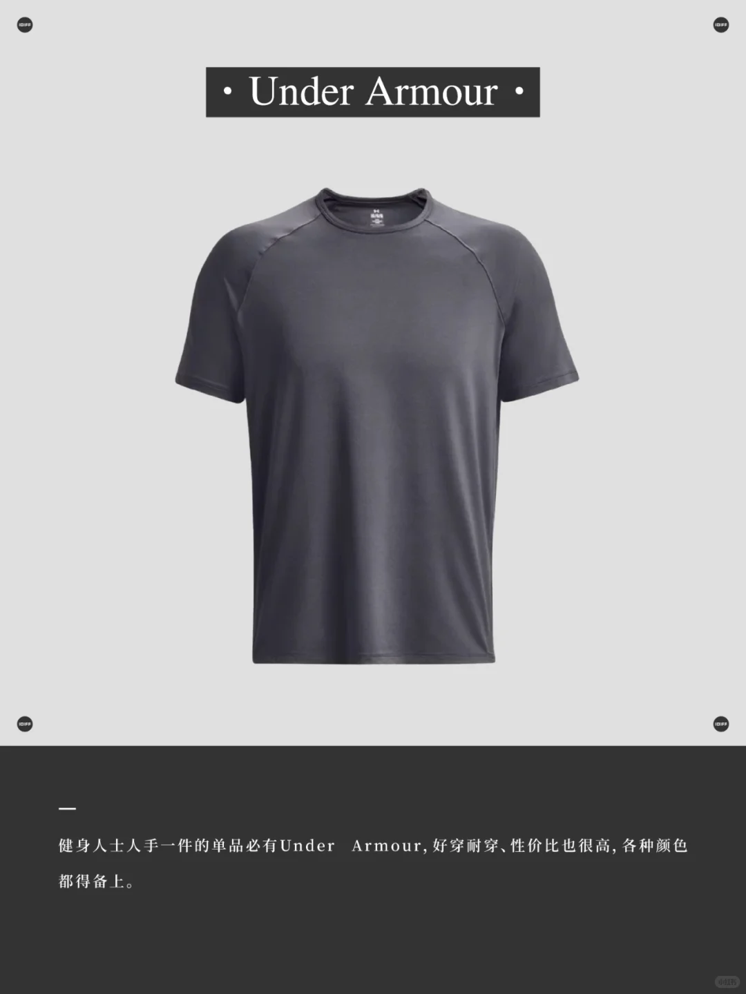 健身人士人手一件的单品必有Under Armour,好穿耐穿、性价比也很高,各种颜色都得备上。