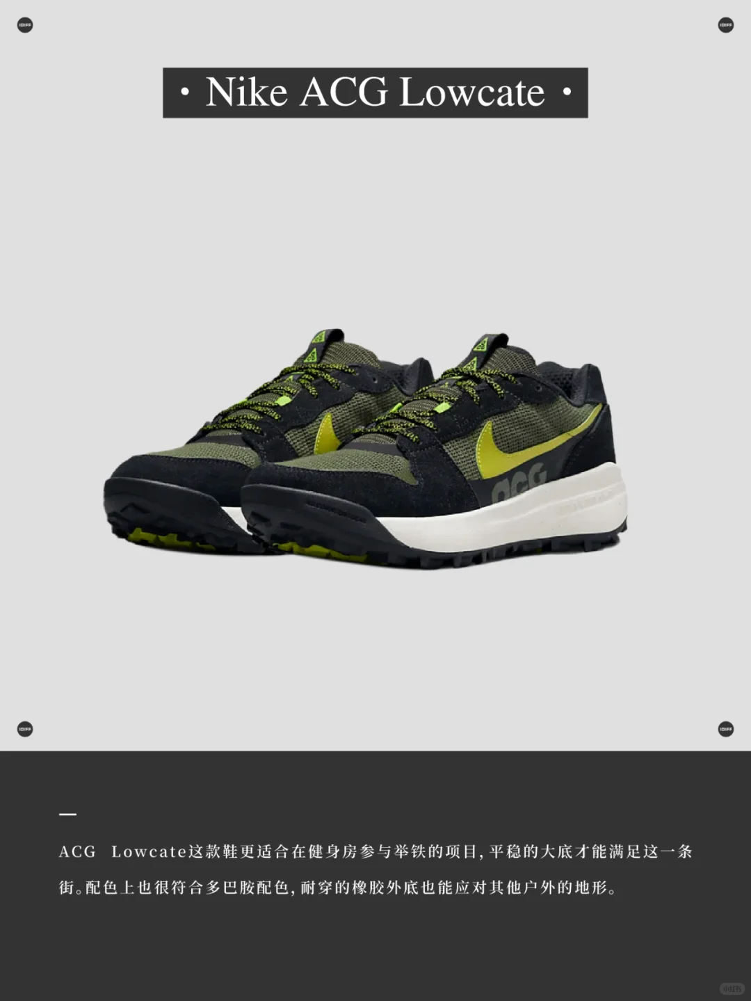 ACG Lowcate这款鞋更适合在健身房参与举铁的项目,平稳的大底才能满足这一条街。配色上也很符合多巴胺配色,耐穿的橡胶外底也能应对其他户外的地形。