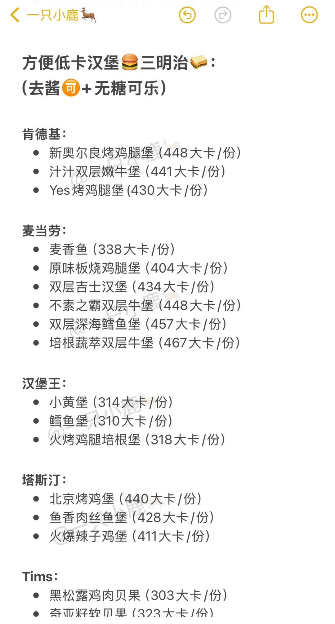 不方便做饭的,图8也有快餐汉堡三明治低卡食物(标有卡路里)