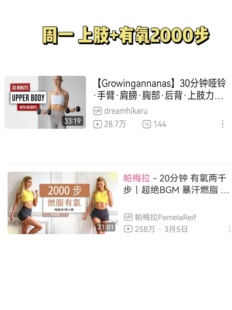 周一:上肢+有氧