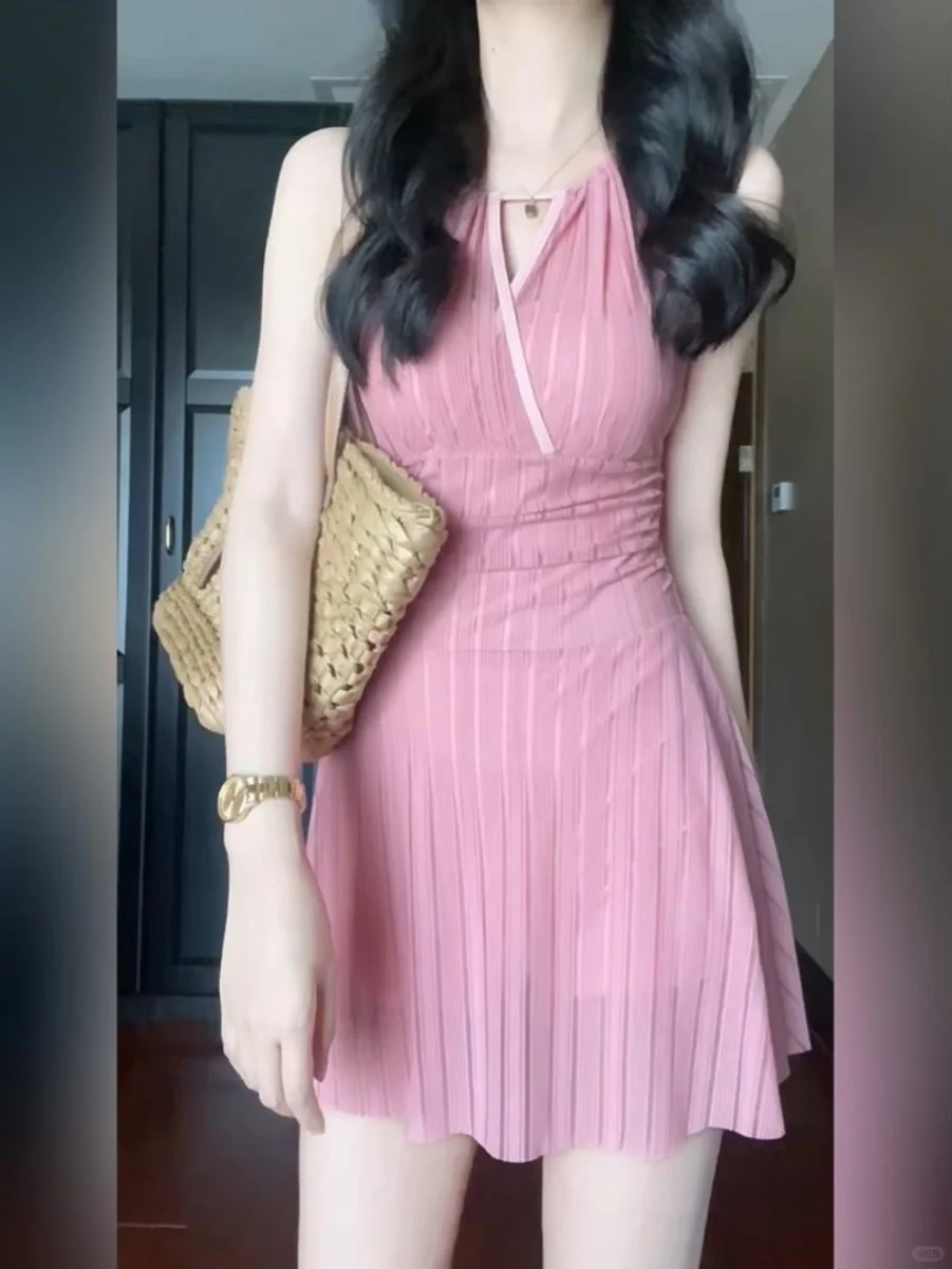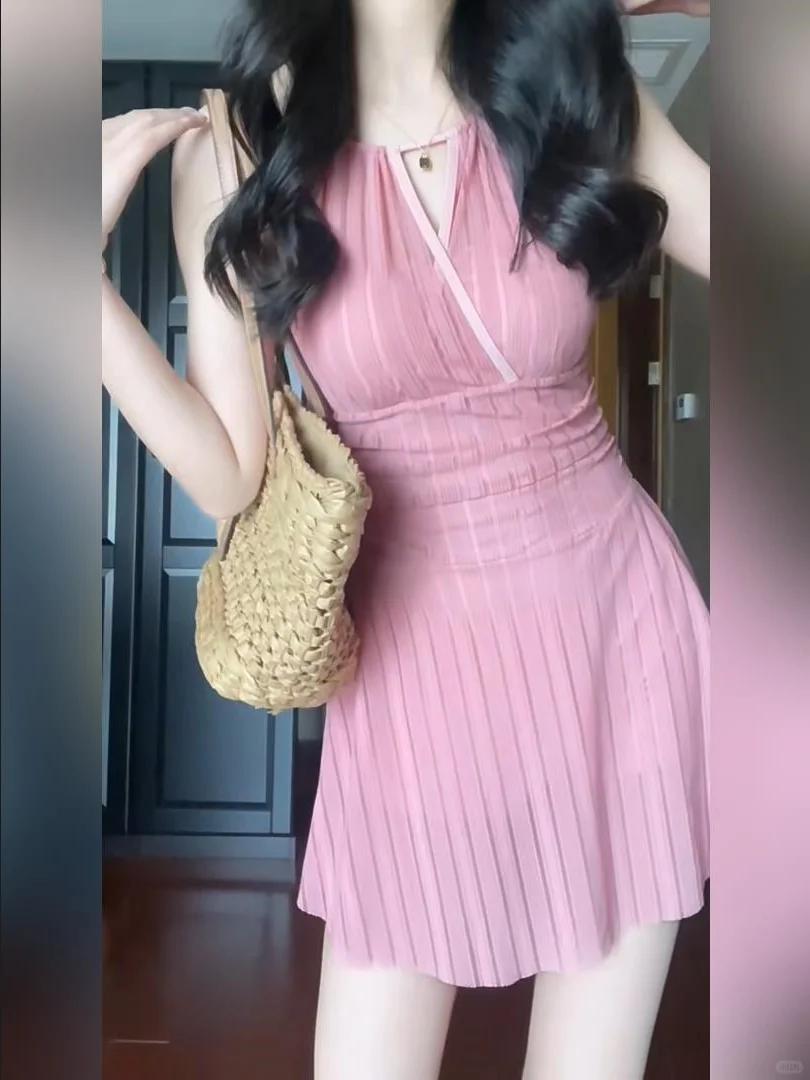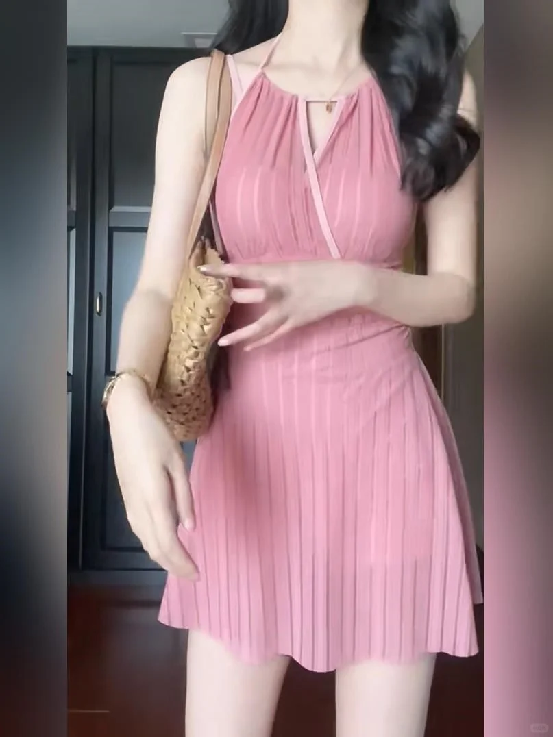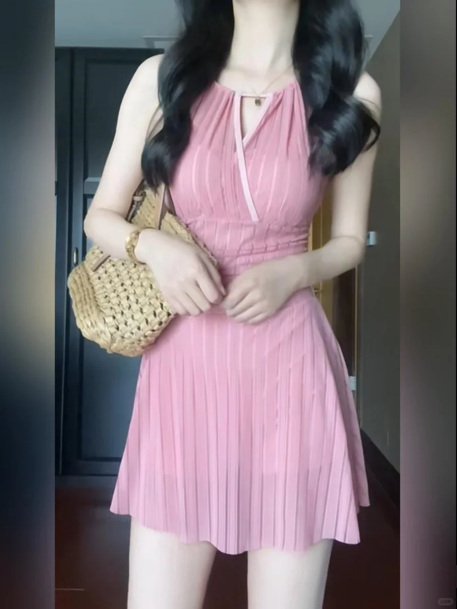这款连体泳衣真的是太爱了!粉色系温柔又显白,带胸垫设计对小胸MM超级友好,完全不用担心走光问题。保守又不失甜美,穿上它去泡温泉,你就是那个最亮眼的小仙女!