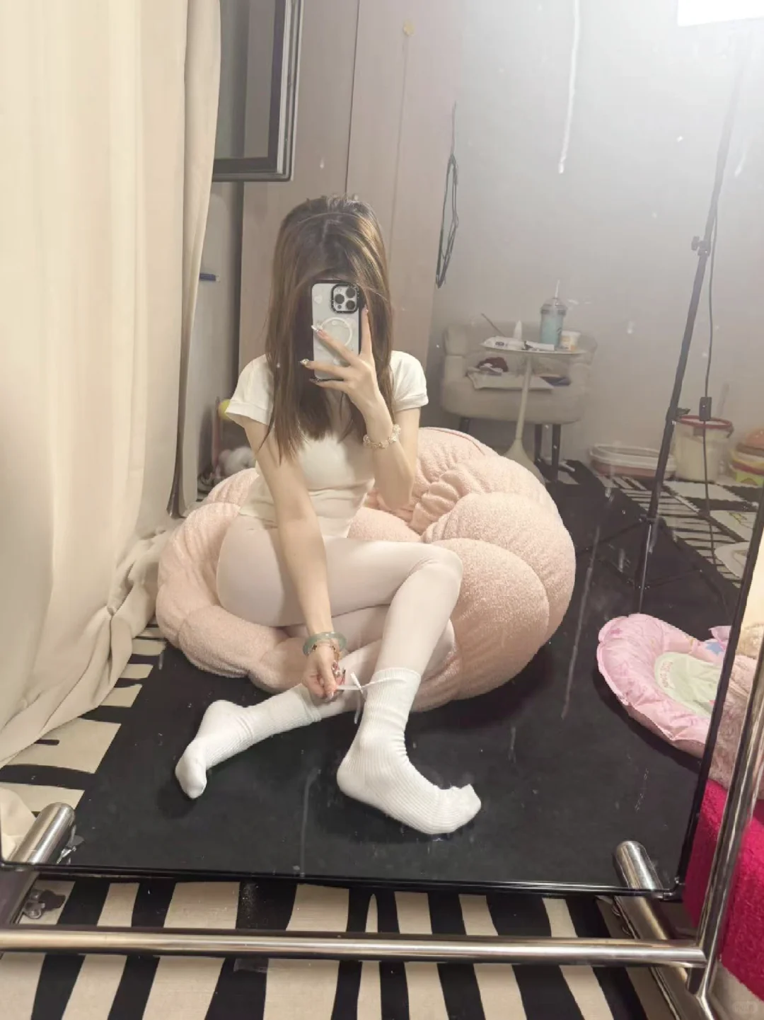 奶白短T+同色系瑜伽裤配白袜干净又清爽一整个纯欲感拉满日常出街舒适又好看谁穿谁是人间白开水