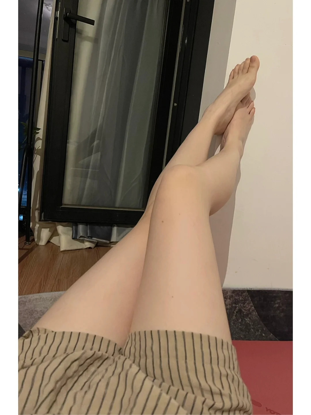 回来有些疲惫,坐在地毯上,秀起了被自己都迷恋的小细腿