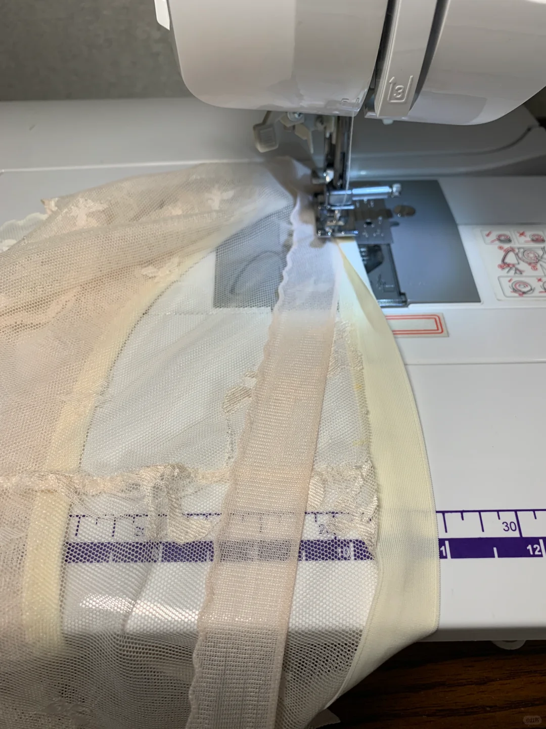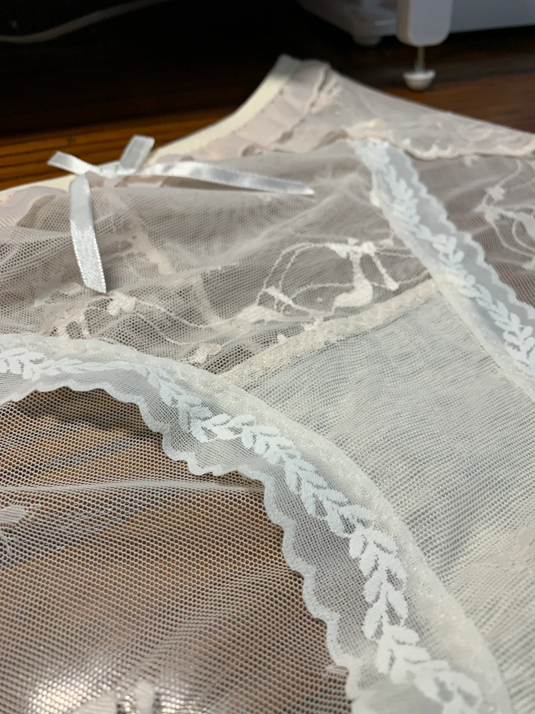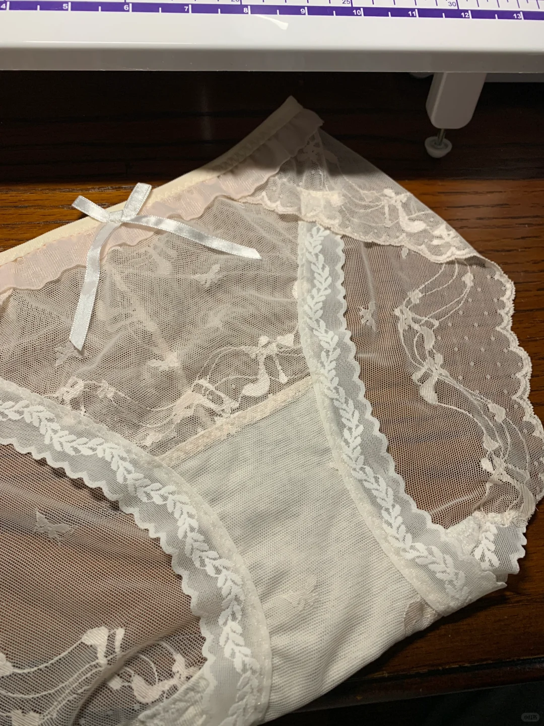 每天踩一条,这蕾丝布真的好柔软,爱了爱了,用无痕花边对折包的腰头,很亲肤