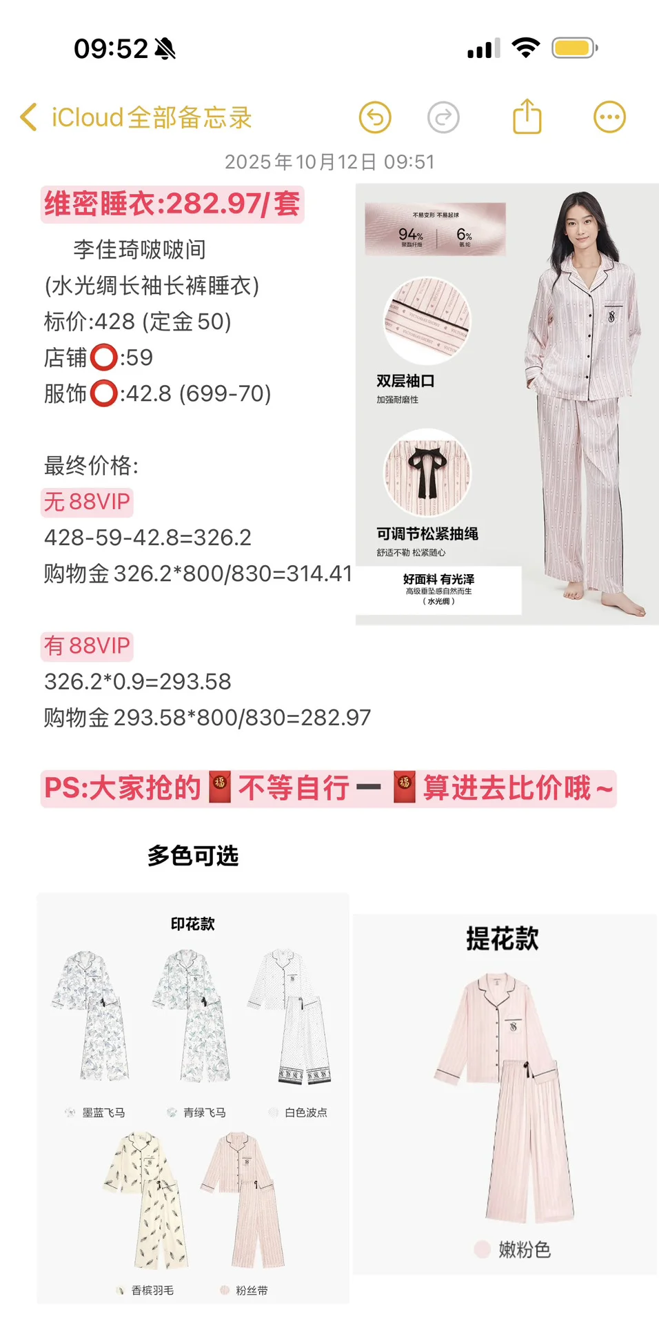 2025李佳琦双十一维密睡衣(10.12最新整理)