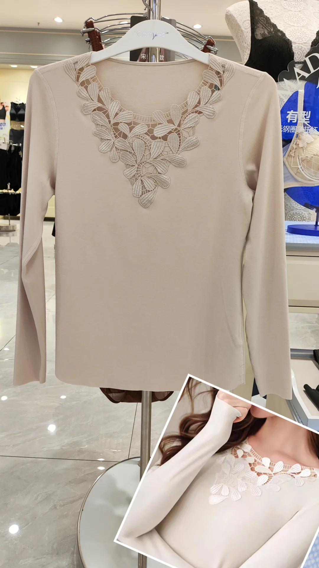 安莉芳蕾丝打底衫把温柔与保暖焊死!