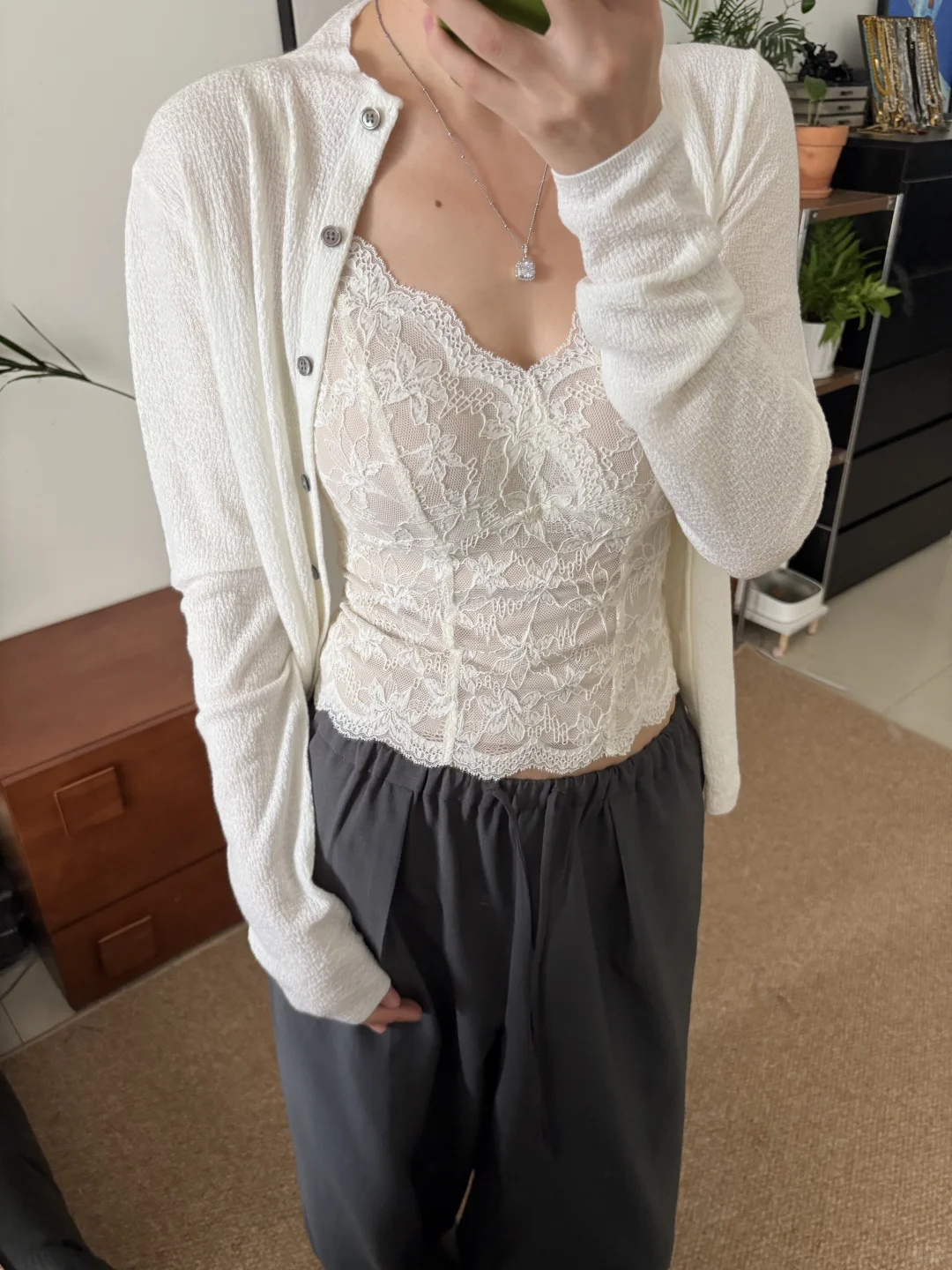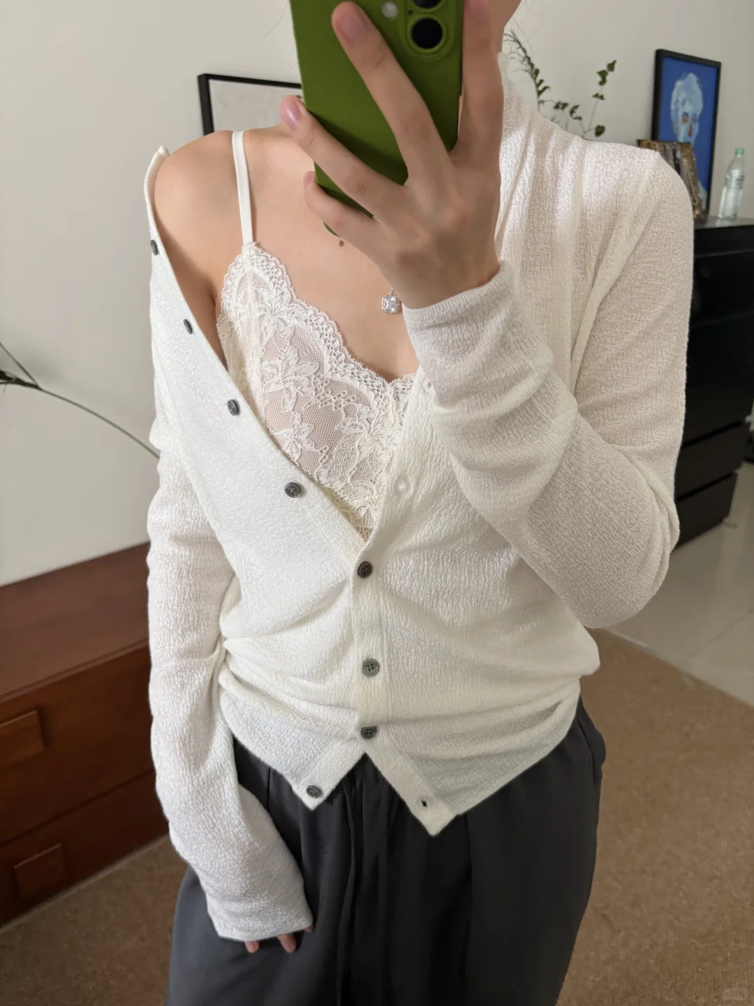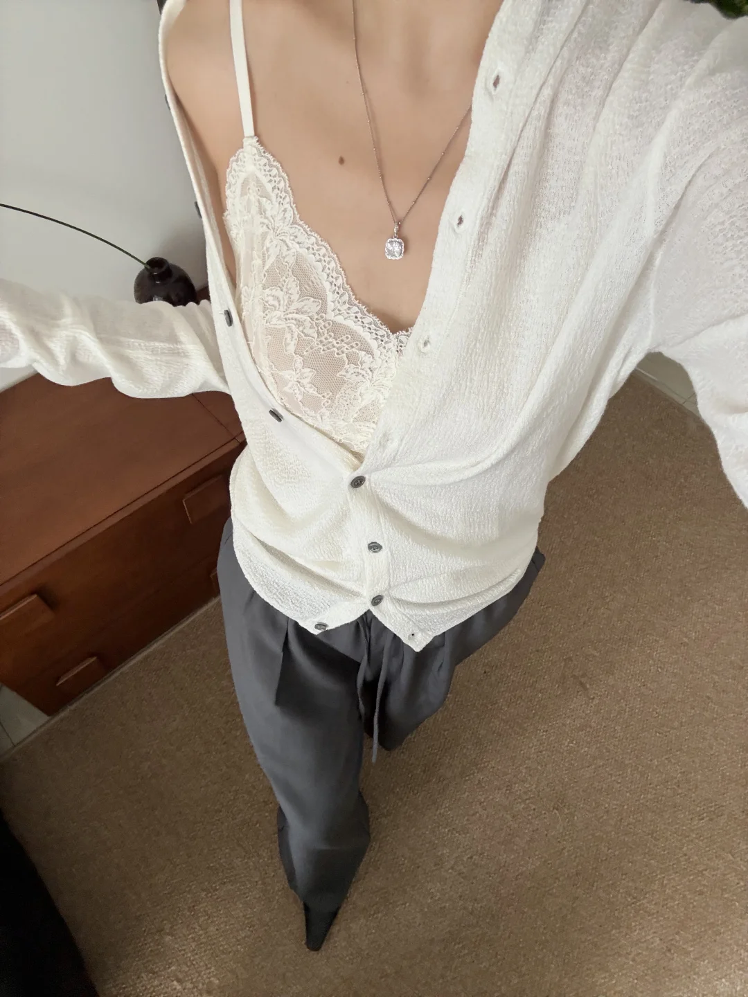 山林曦照蕾丝衫的兼容性|搭裤子也没问题