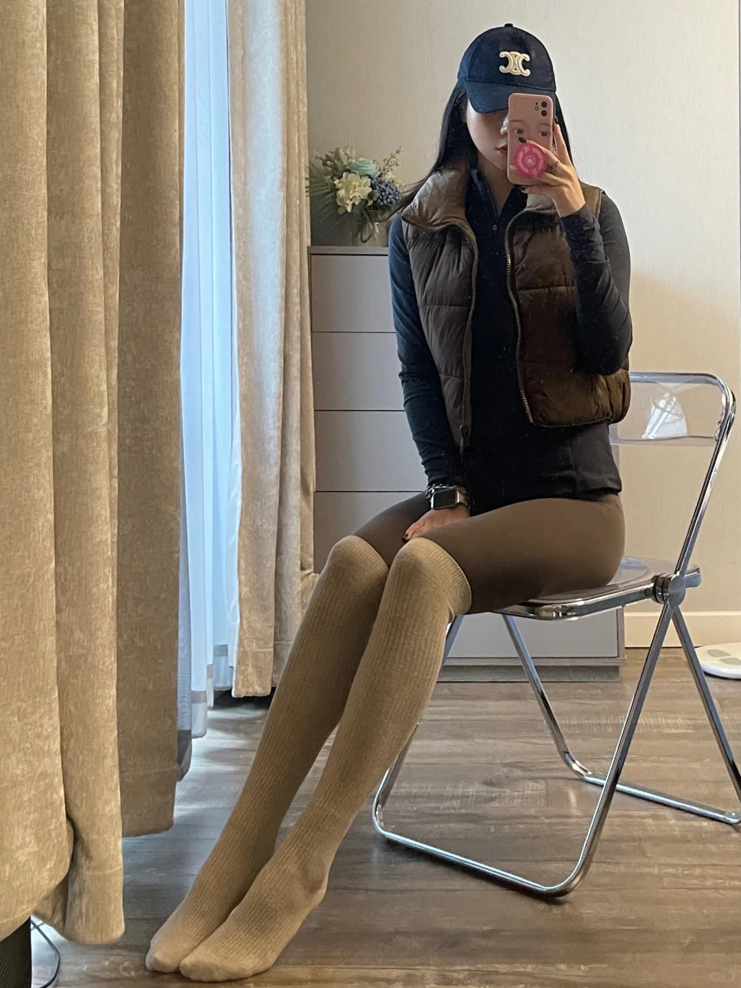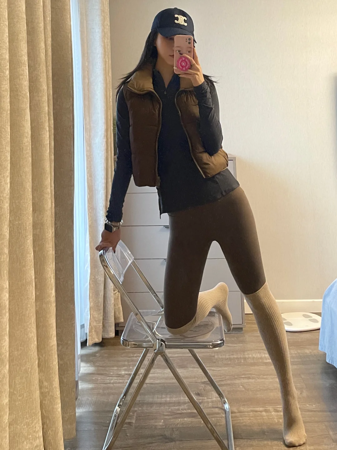 运动上衣搭配马甲和过膝袜整个运动风拉满