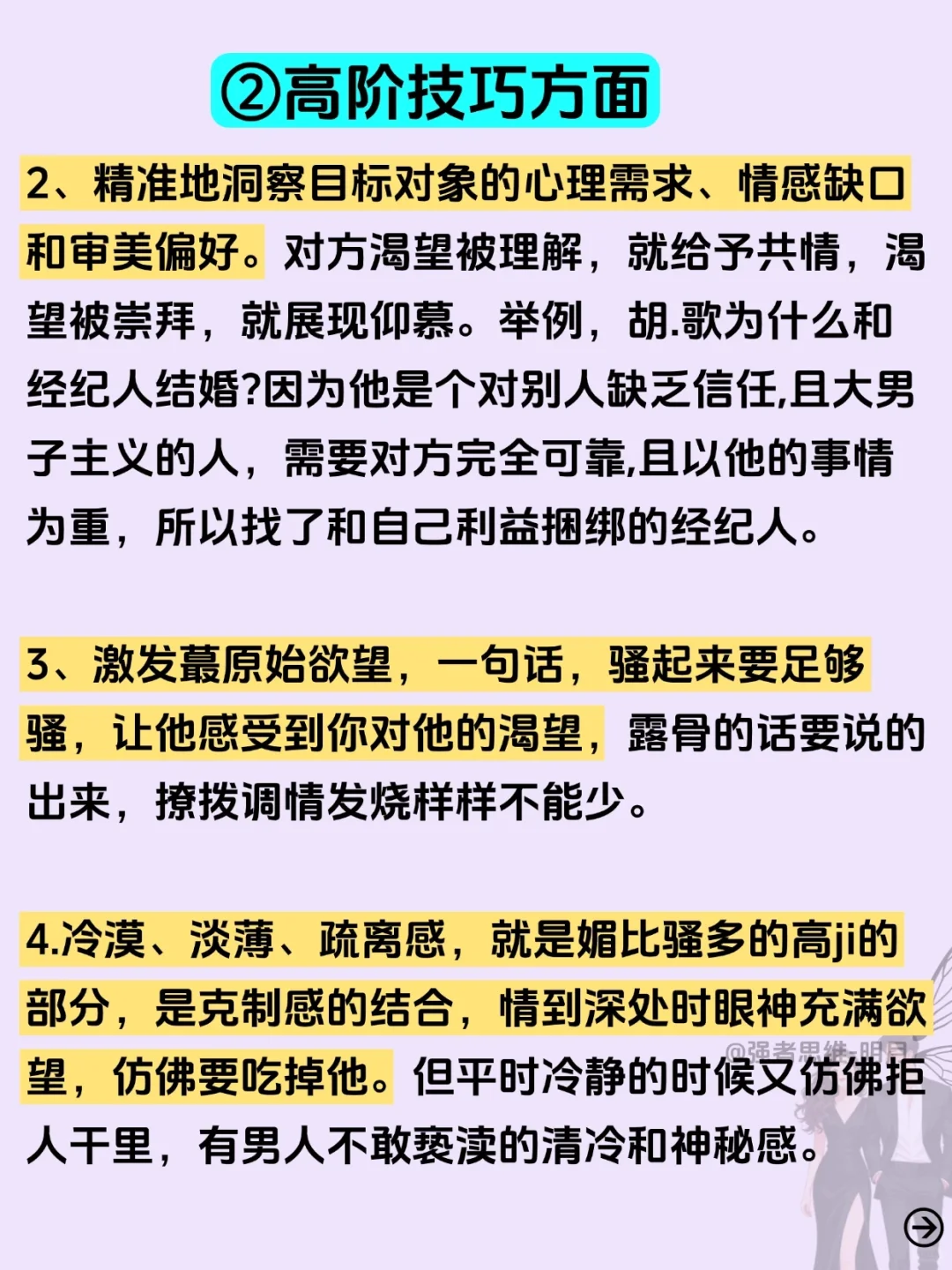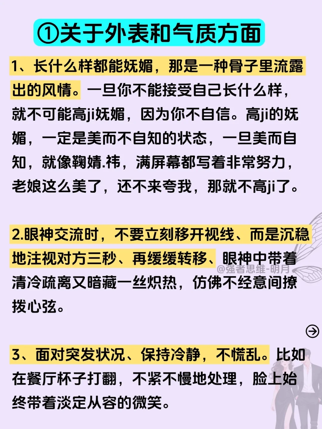 形容一个女生极具吸引力最高级的词汇是“媚”,它比骚更高级。对付一般男人你“骚”就够了,但如果对面是个大佬,吃过也见过,只骚就远远不够,必须得媚。今天就给大家讲讲“媚术”。