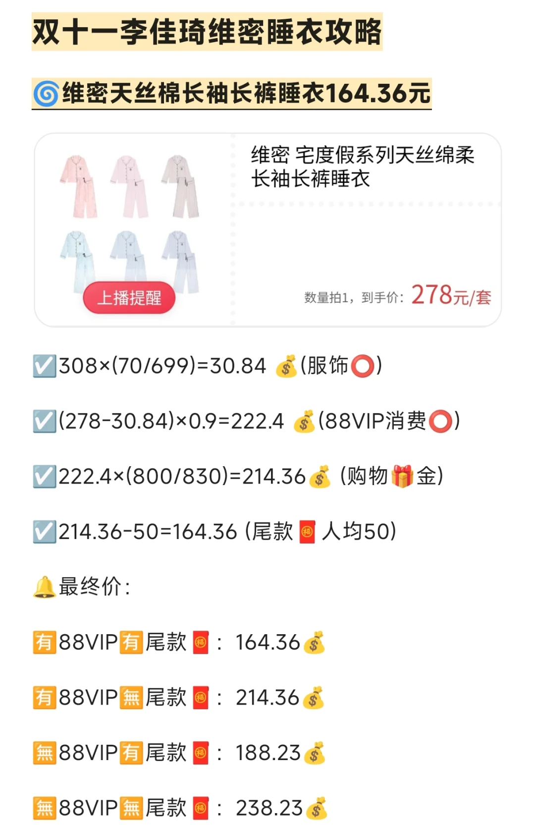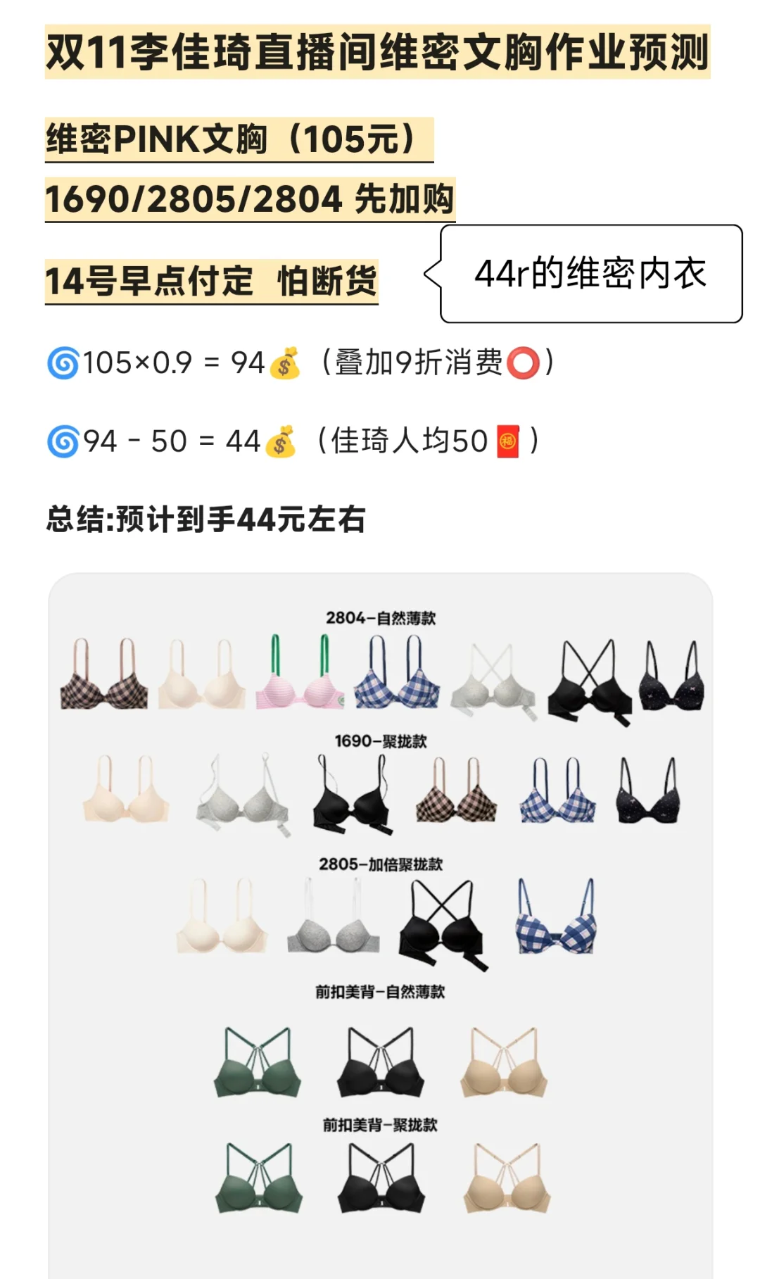 李佳琦双十一维密内衣40+睡衣150+🔥🔥