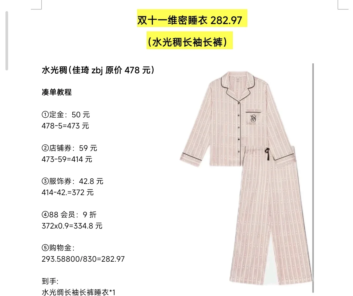 李佳琦双十一维秘睡衣(最新)凑单!!