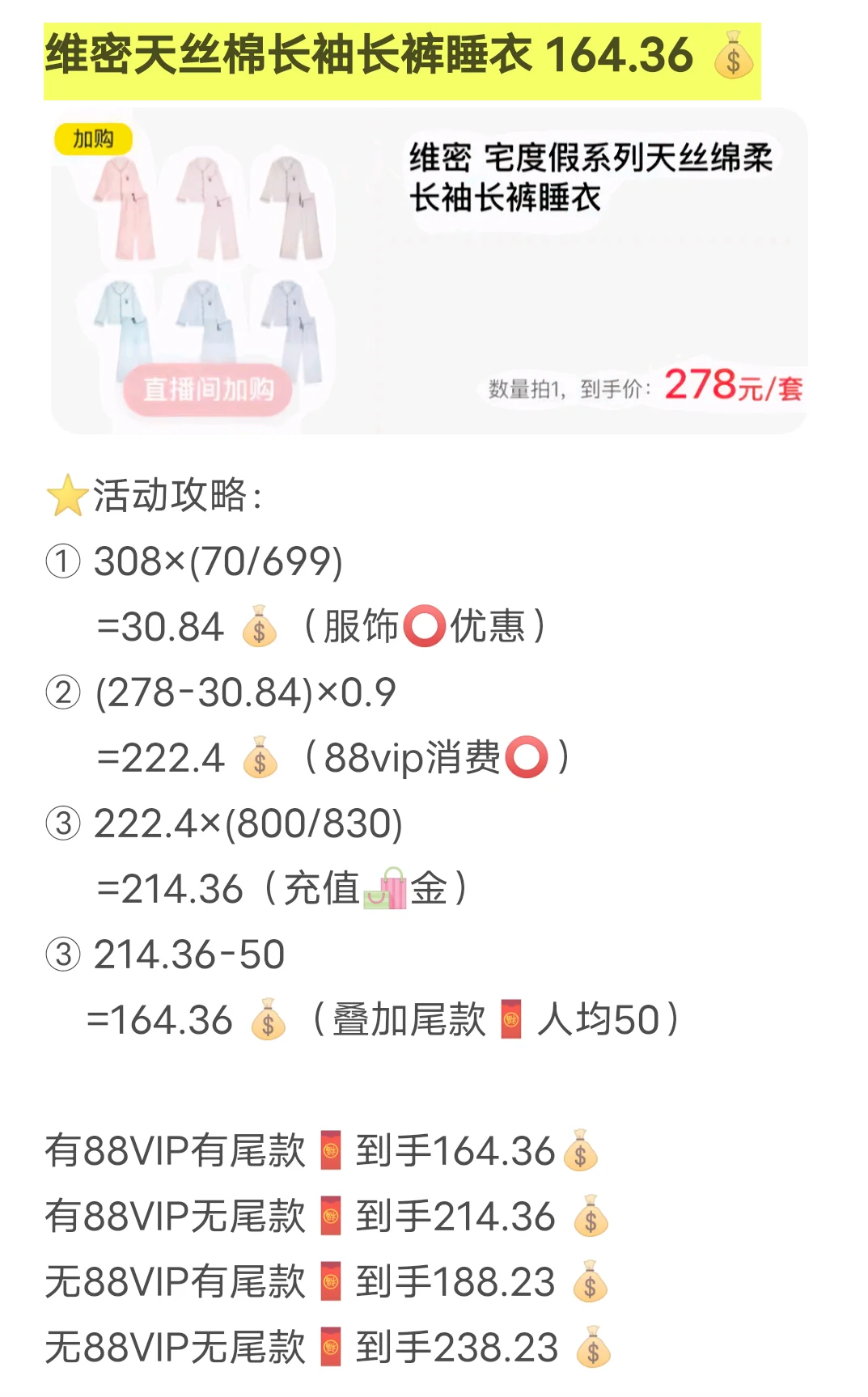 有好多宝子要的维密睡衣凑单攻略终于来啦 蹲的宝子快来抄作业!!