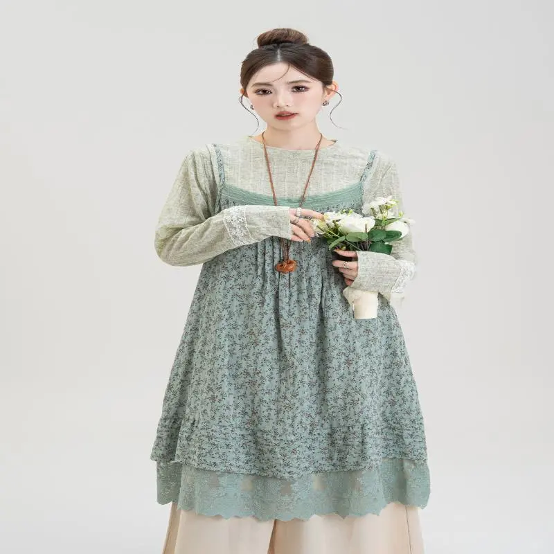 ✨森系套装女早秋新款甜美碎花吊带裙叠