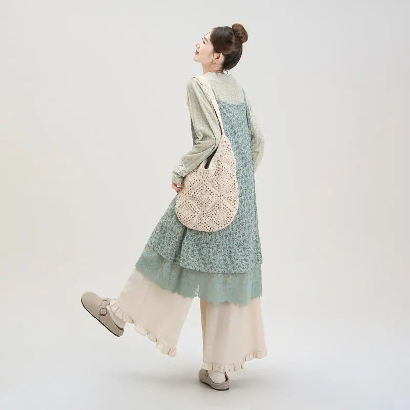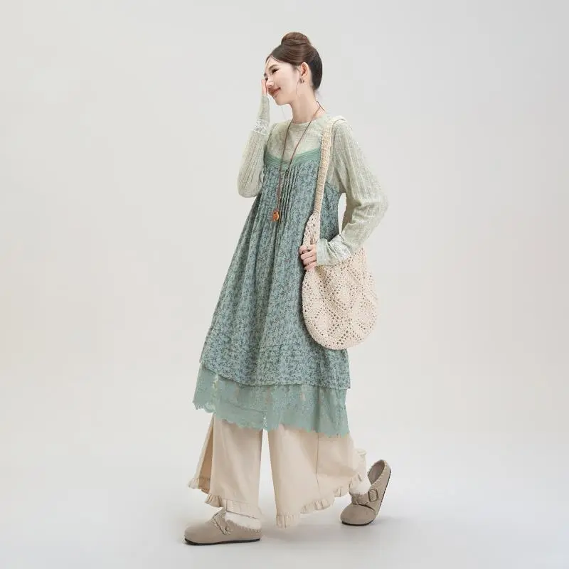 这套森系套装真的太有秋日氛围感啦!吊带裙的碎花设计,满满的田园风情,仿佛置身于花海之中🤍。搭配上花边阔腿裤,不仅修饰了腿部线条,还增添了一份优雅的气质🤍。内搭的上衣也很贴心,叠穿起来层次感十足,无论是单穿还是搭配外套都超有范儿。