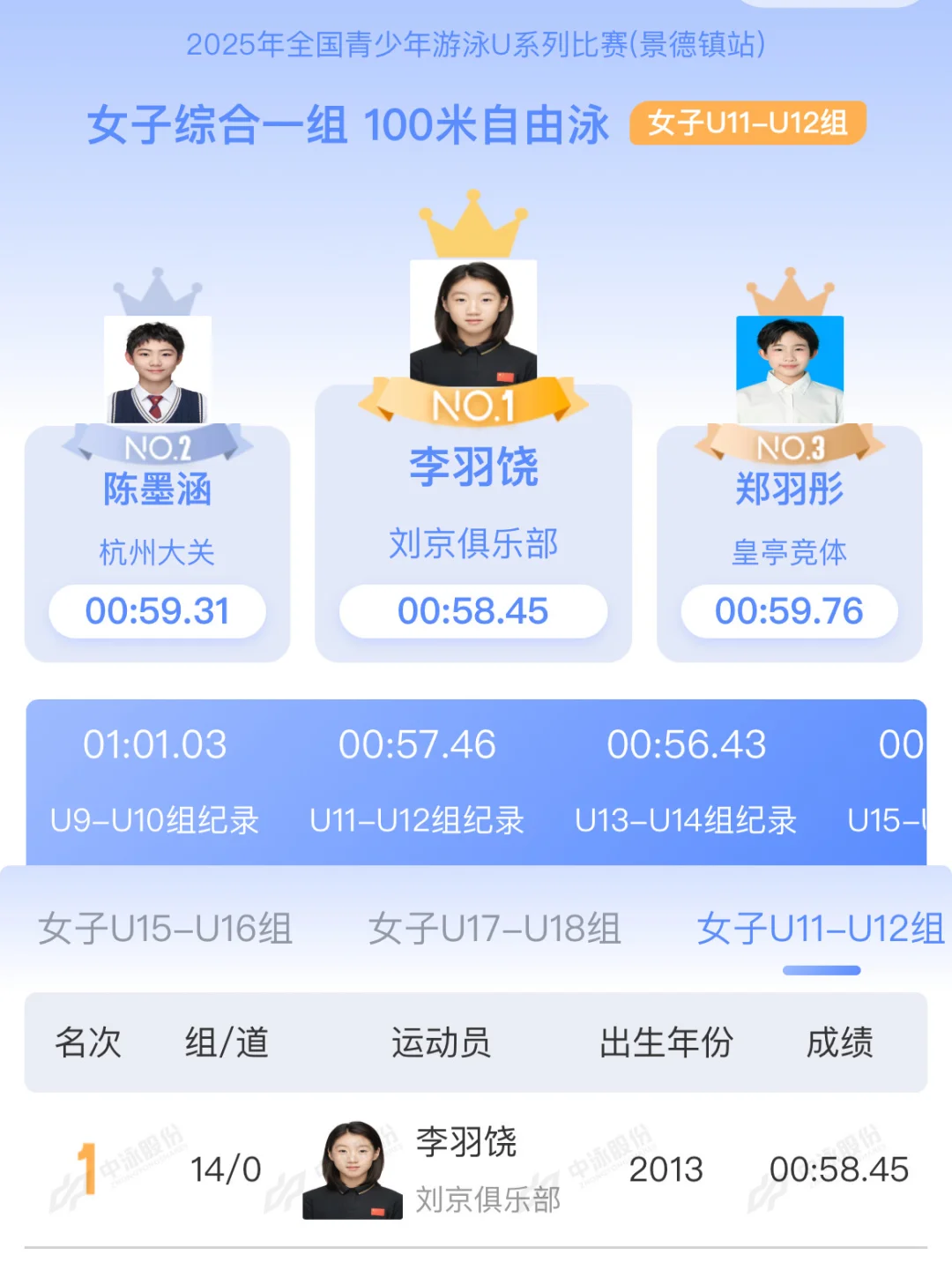 12岁李羽饶|6项6金🥇刷新1️⃣项赛会纪录‼️