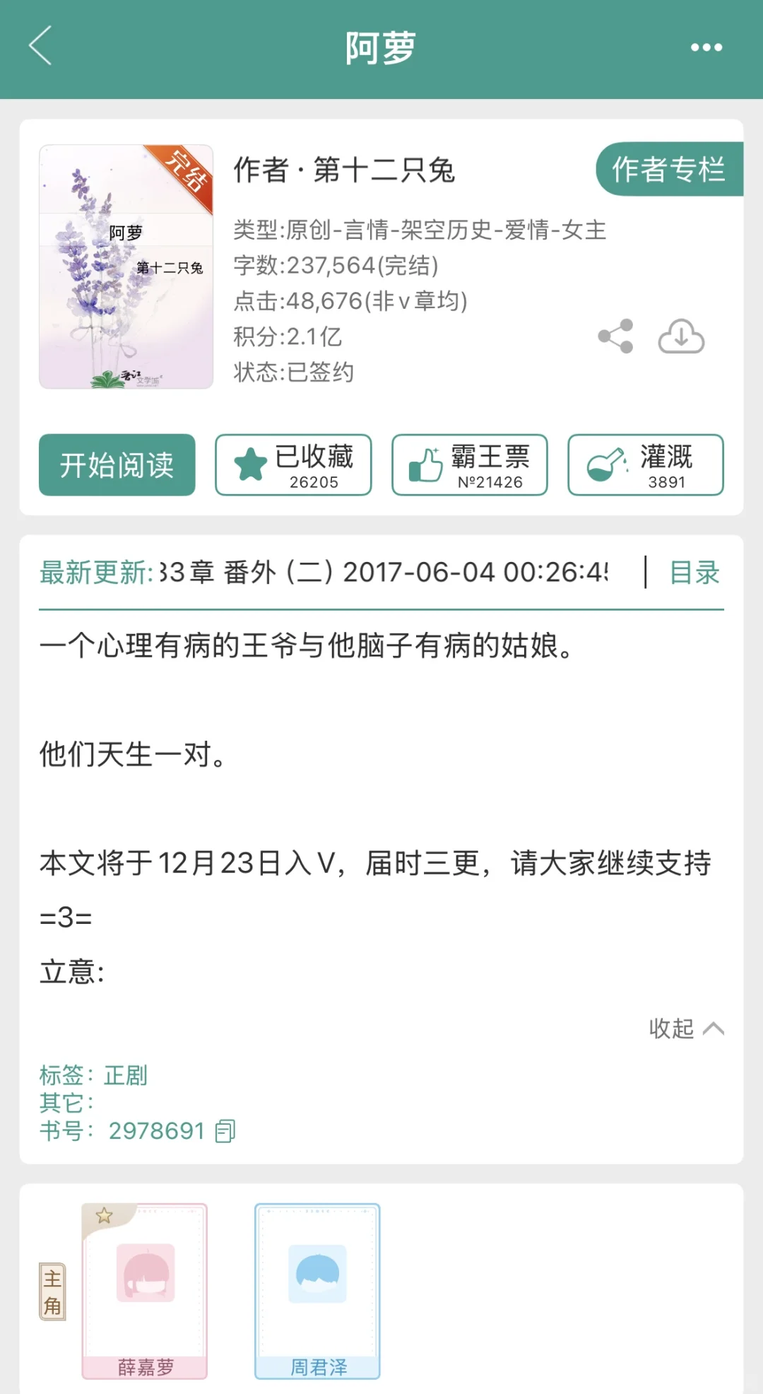 这本是傻子女主,所以钝感力是贯穿全文了,虽然很多人不喜欢这本(男主太坏),但我很喜欢阿萝。