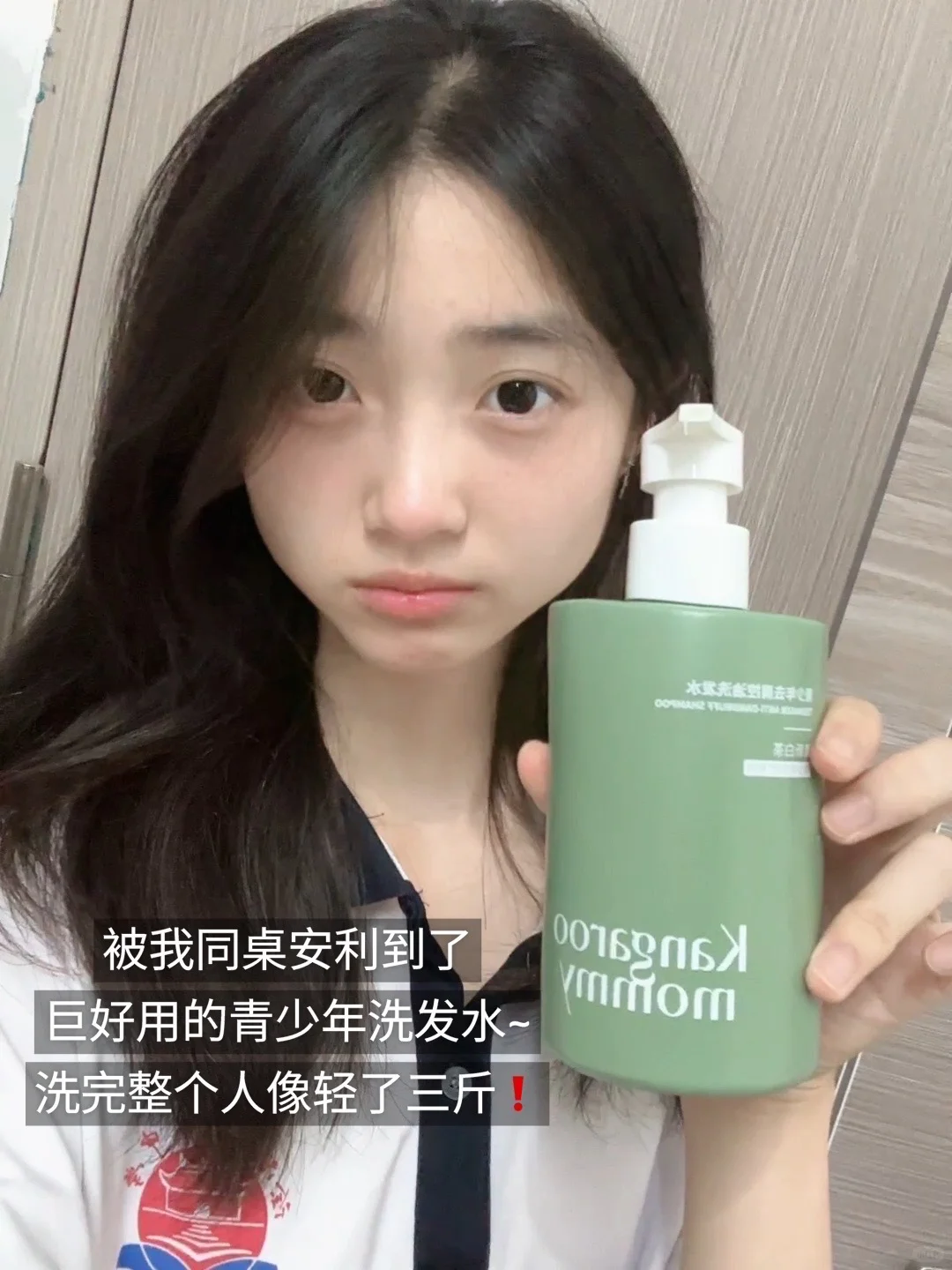 跟同学一起买了袋鼠妈妈青少年洗发水,说说感受:最直观的:撑得久!现在洗完头,能清爽一整个白天+晚自习。第三天虽然会有点出油,但绝对不会像以前那样塌得没眼看好吗!发根还是立的!(这对我来说真的够了!)现在还是头包脸