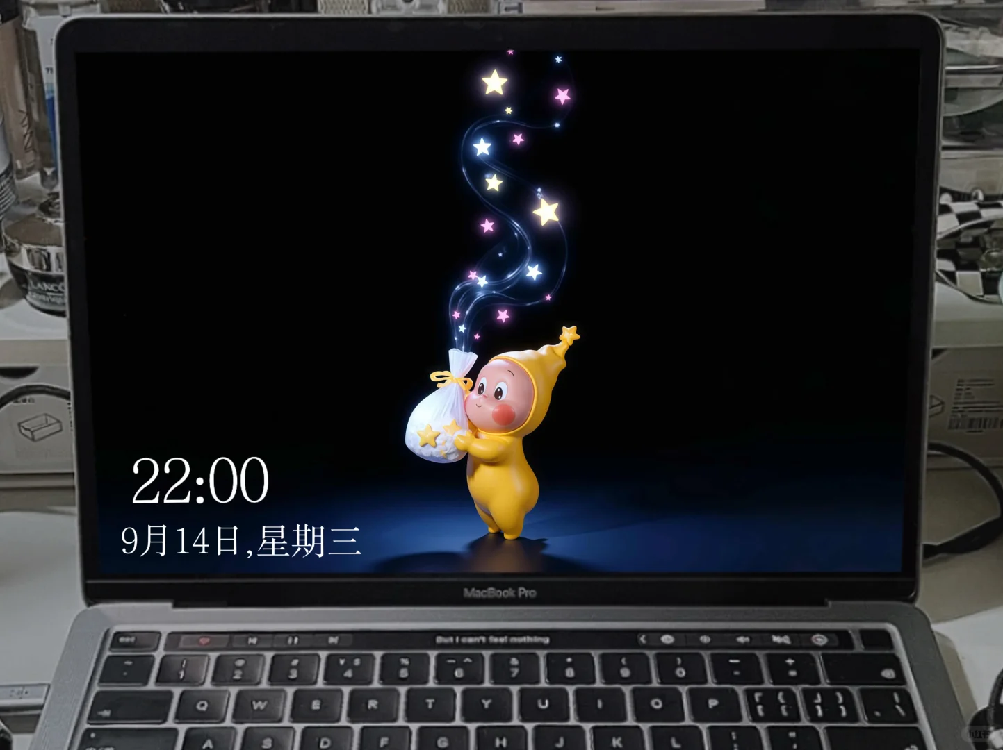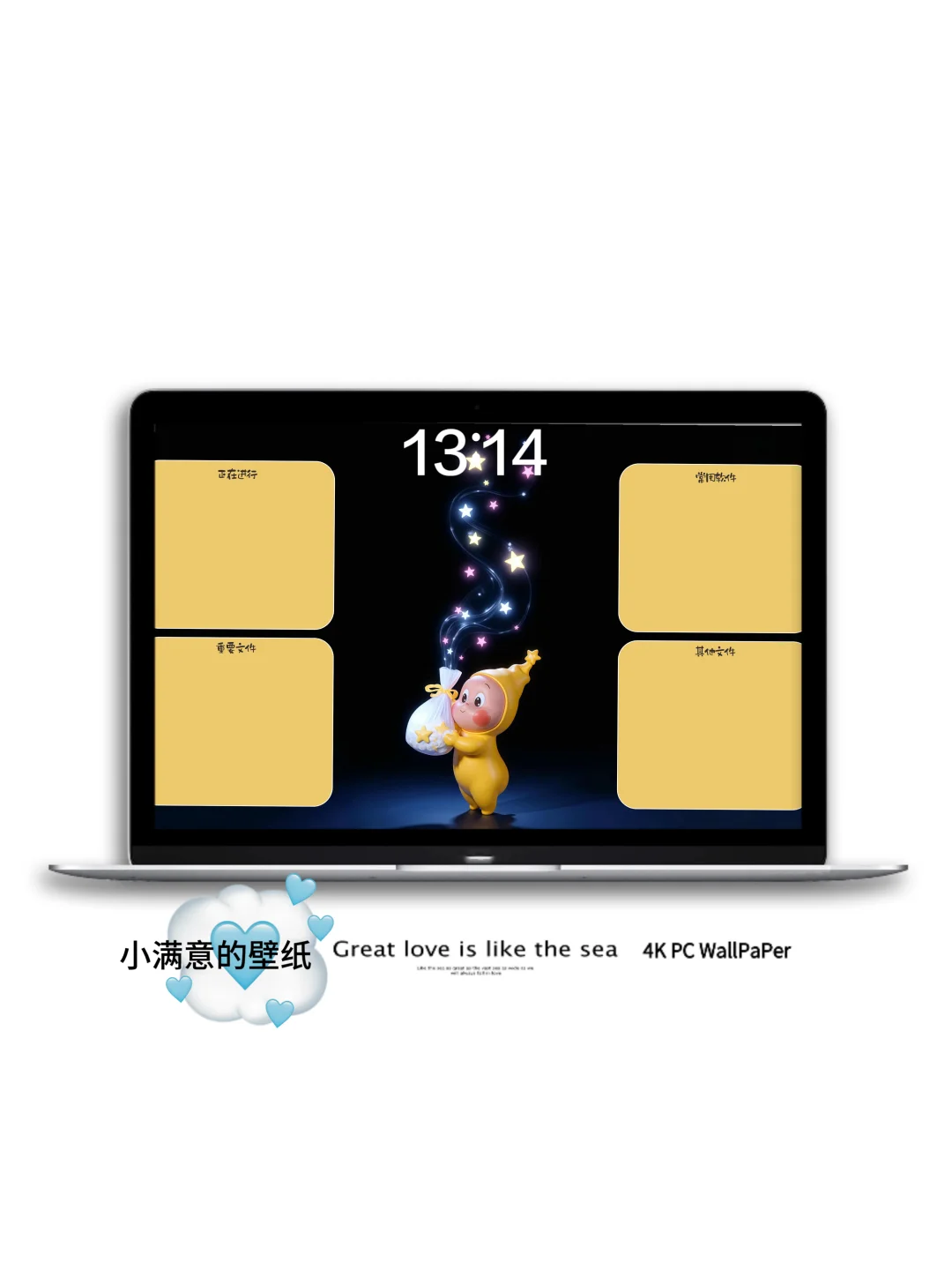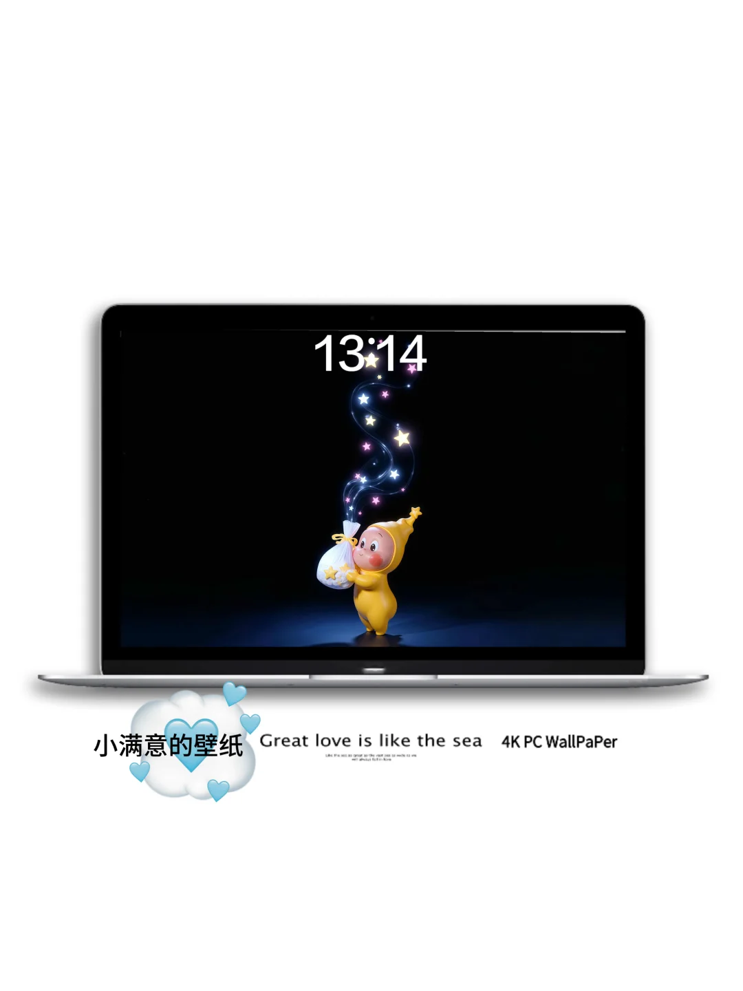 谁能拒绝这个漏星星的星星人啊!软乎乎的星星人抱着星星袋,星光顺着袋口缠成温柔的螺旋——暗屏亮起的瞬间,像把一整个静谧星空揣进了电脑里🌌