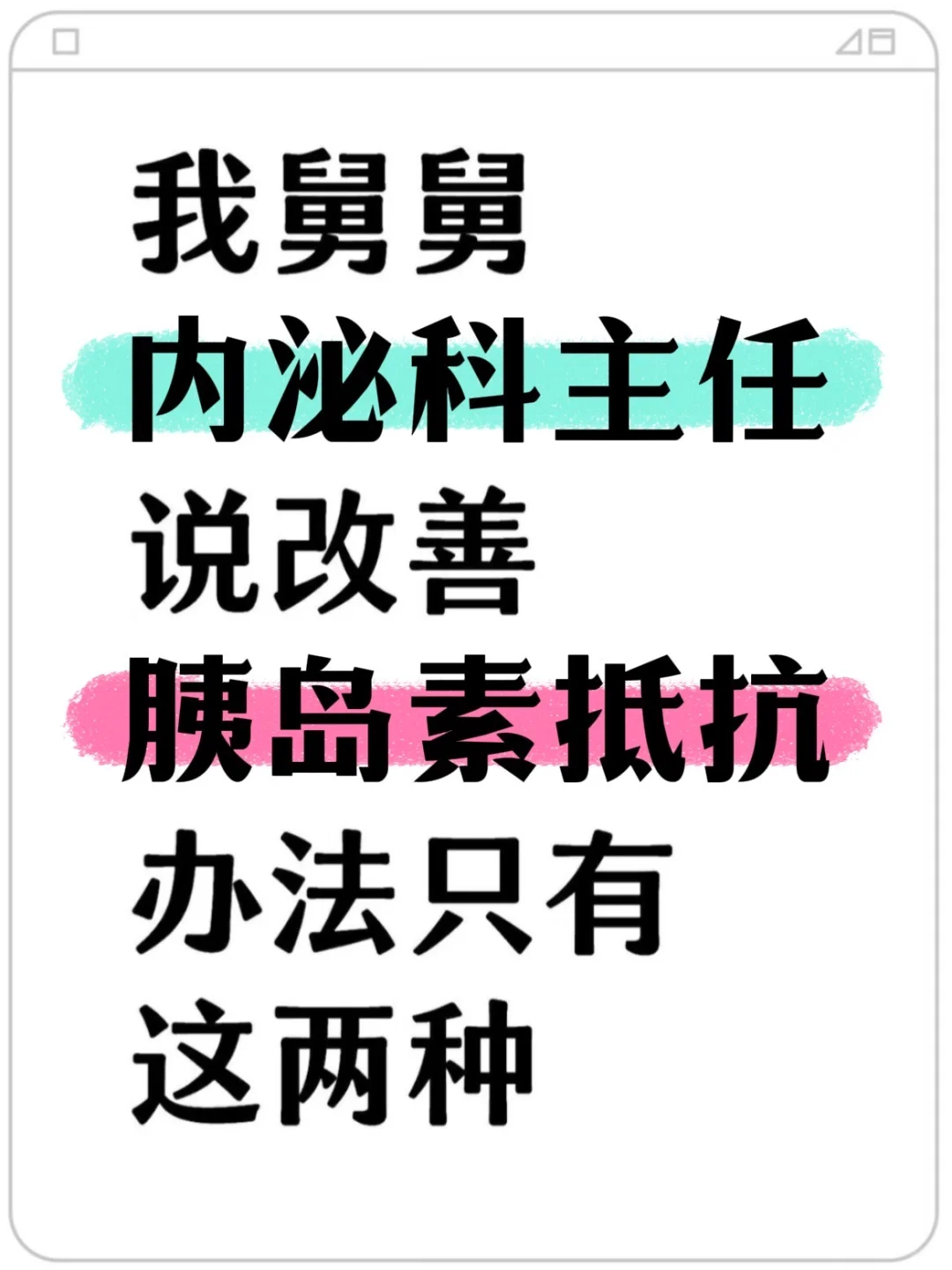 舅舅在内泌科退休十几年了,说自己见过太多胰岛素抵抗反复的,究其根本,胰岛素抵抗不只是“少吃糖”那么简单,核心是细包“耳朵”不灵了、听不进胰岛素指令,能量送不进去,身体代 谢乱了套。想改善得慢慢调理,从控饮食+补肌醇+做运动入手。控饮食+做运动后面有具体的规划给大家参考!
