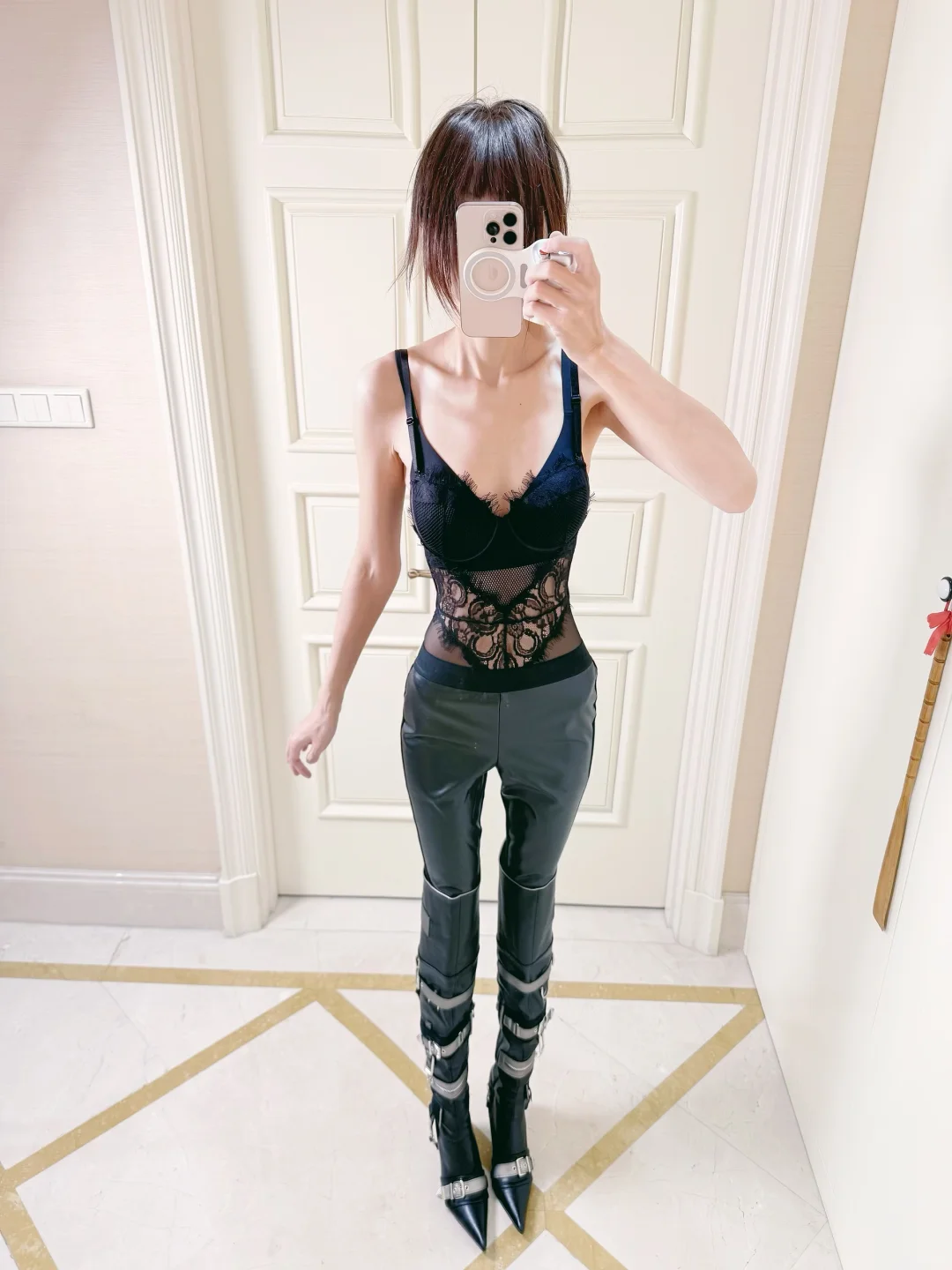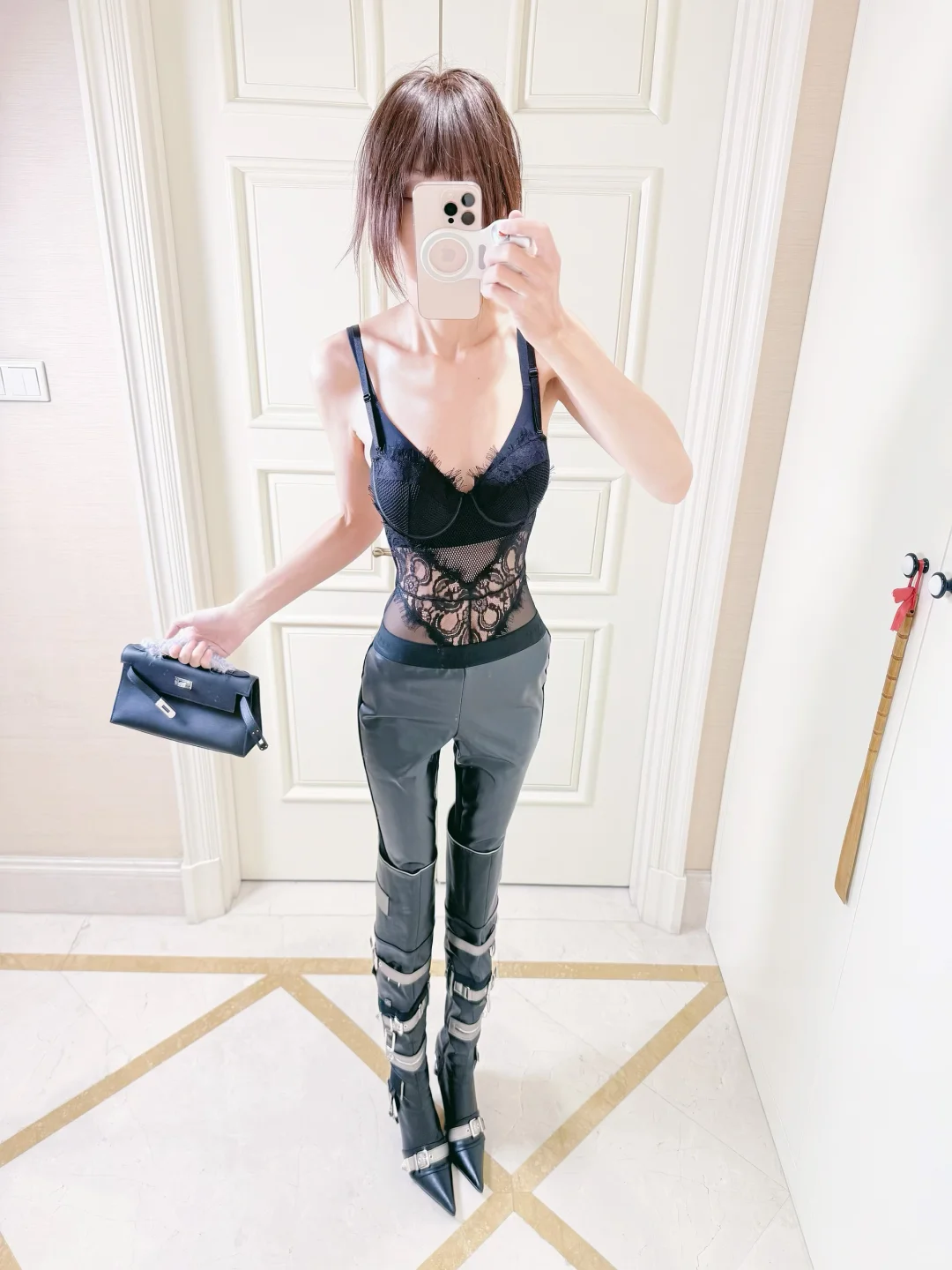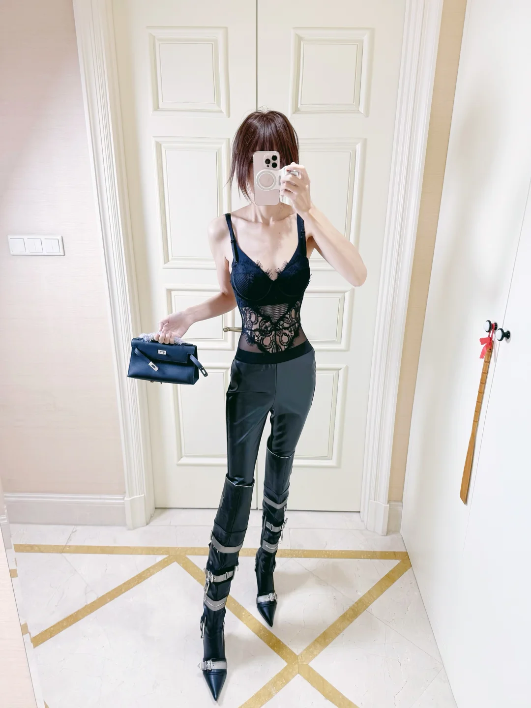 包臀皮裤➕鱼骨胸衣🤳🦋🖤all black