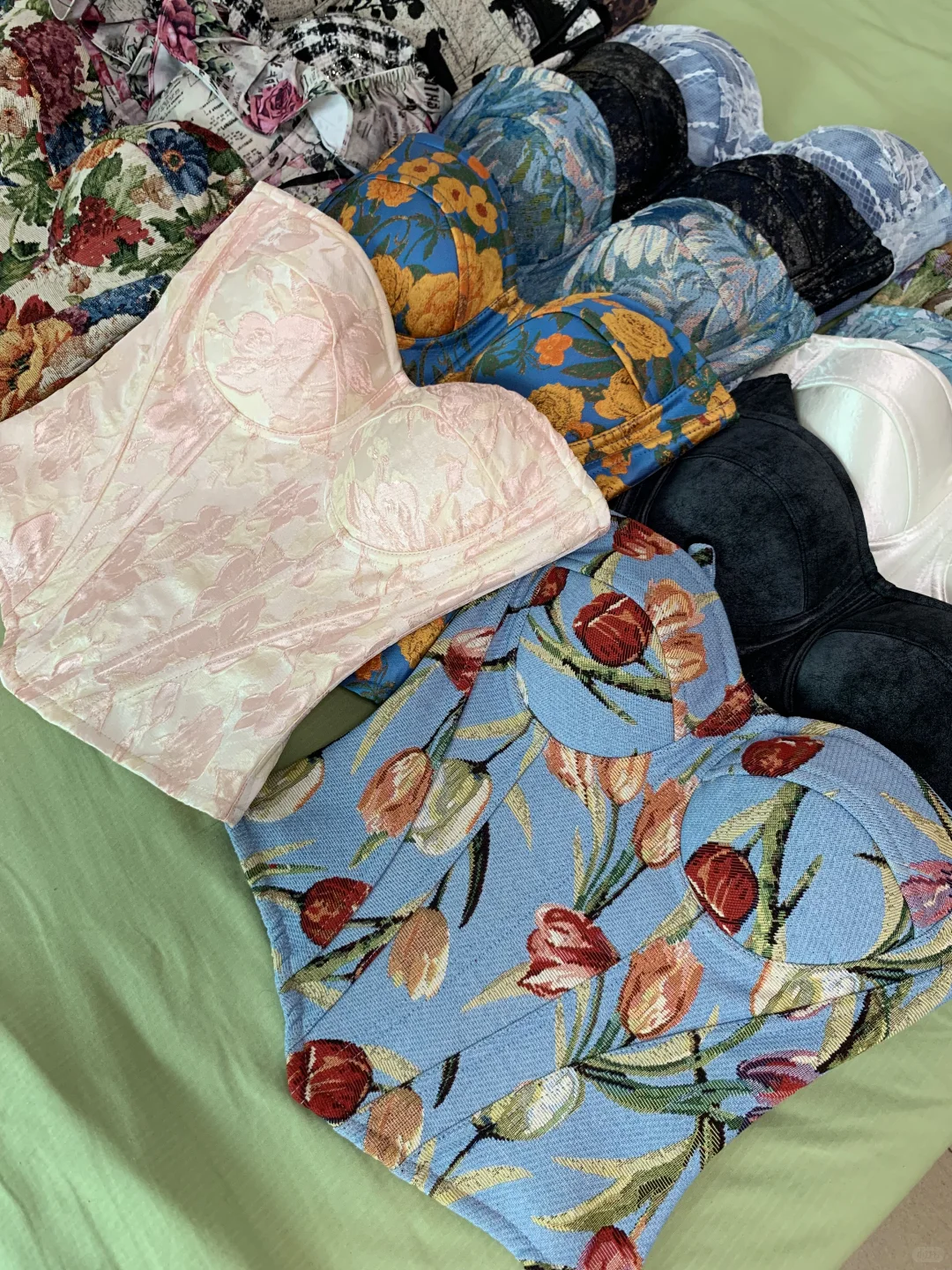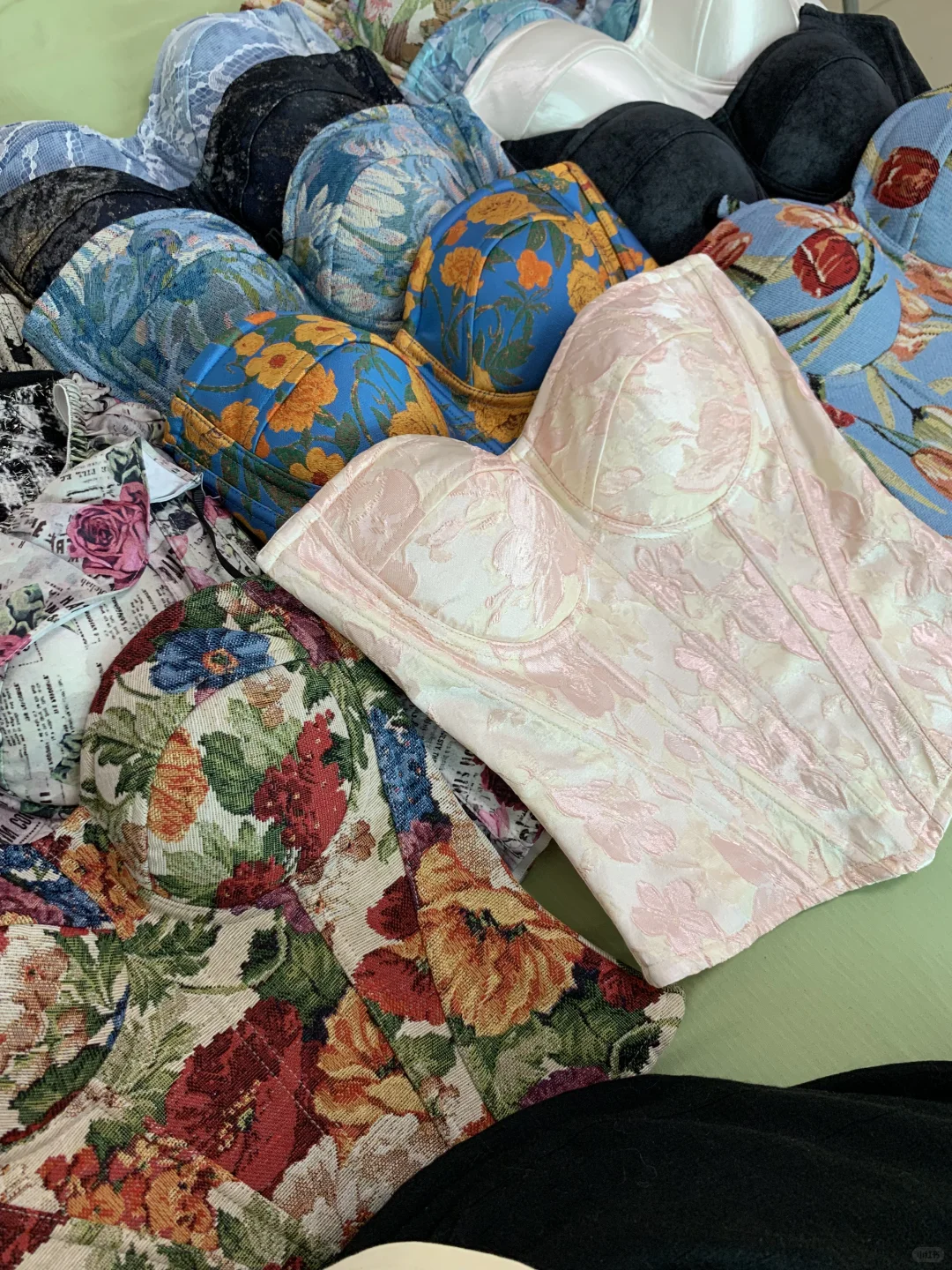 3⃣️穿搭场合。很多姐妹会觉得生活很普通没有场景去穿,像我就会把买到的这些鱼骨胸衣分个类。大概就是约会穿、聚会穿,旅游外出又可以根据目的地去搭配不同的风格。像我穿的频率比较高的千鸟格、山茶花、小恶魔、拾樱、蕾丝牛仔和报纸玫瑰。这几件很好搭配,基础款的下半身也能搭着穿出门。