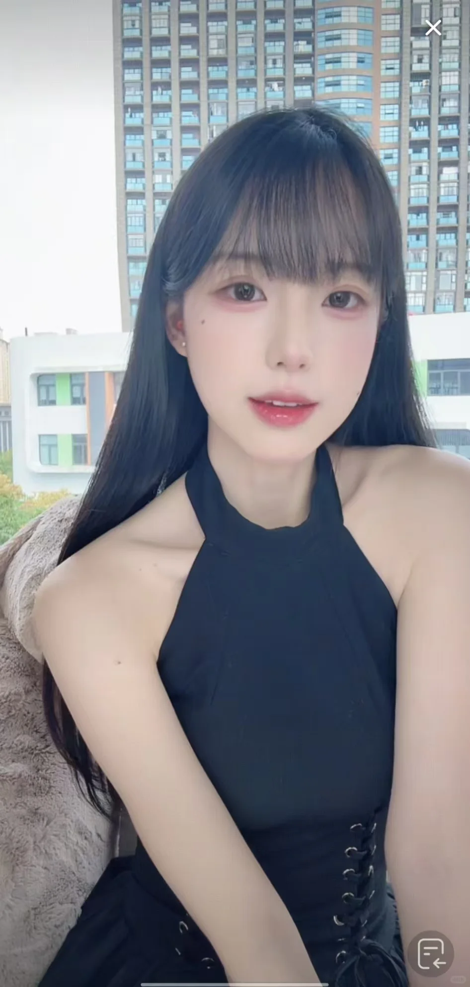 主播解析:高颜值配合清新脱俗的穿衣风格,背景是室内落地窗场景,窗外可见高楼楼宇,光线明亮自然。这样的背景既具生活化的真实感,能拉近距离,又因充足光线让画面更通透,营造出舒适、贴近日常的直播氛围。