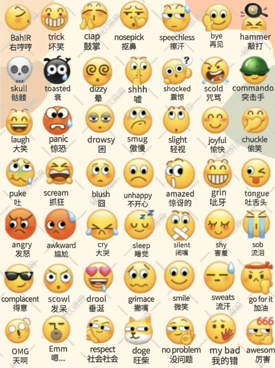 一起来看看平时用的微信emoji表情对应的英语吧!