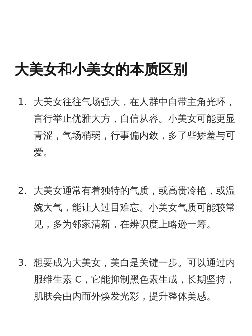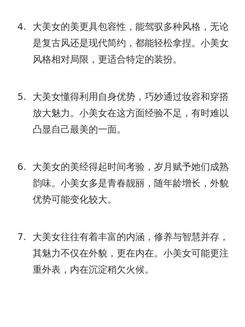 大美女和小美女的本质区别