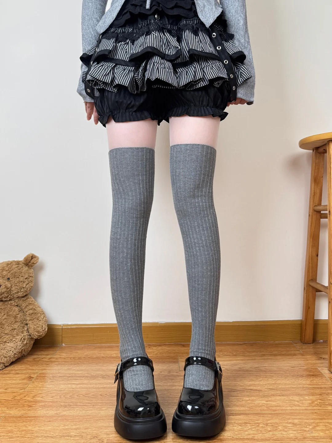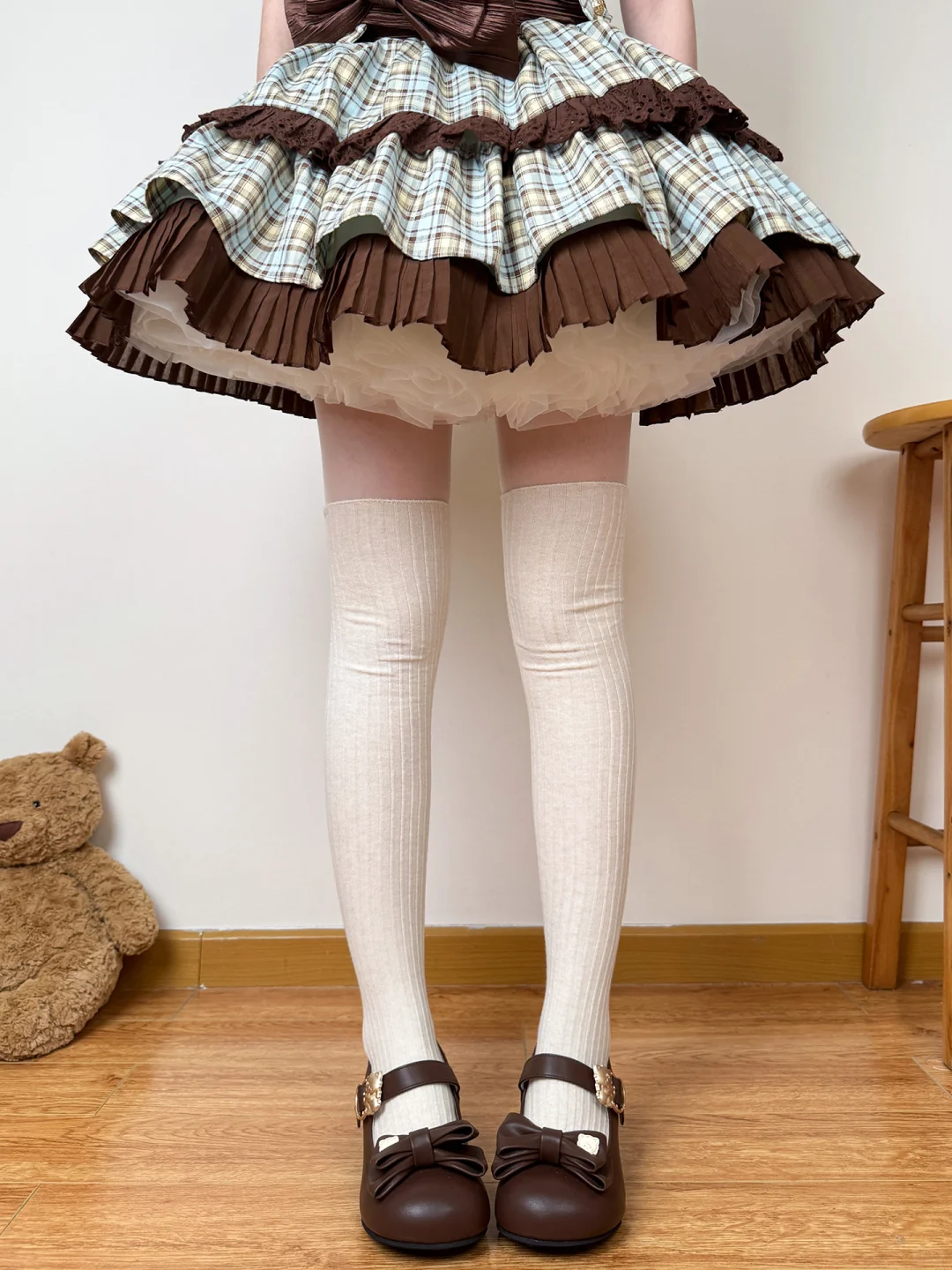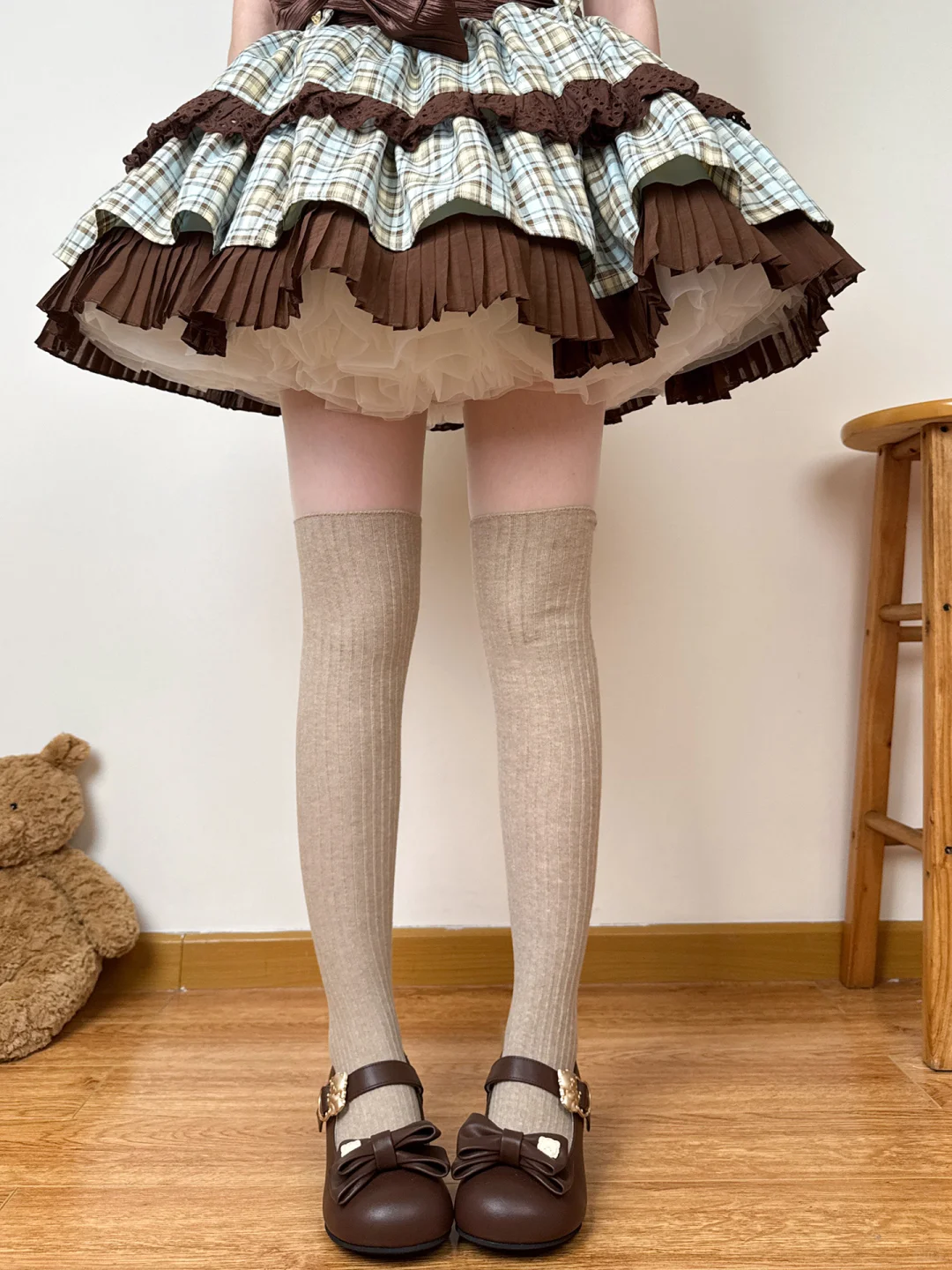 五个颜色的过膝袜我还是最爱卡其色
