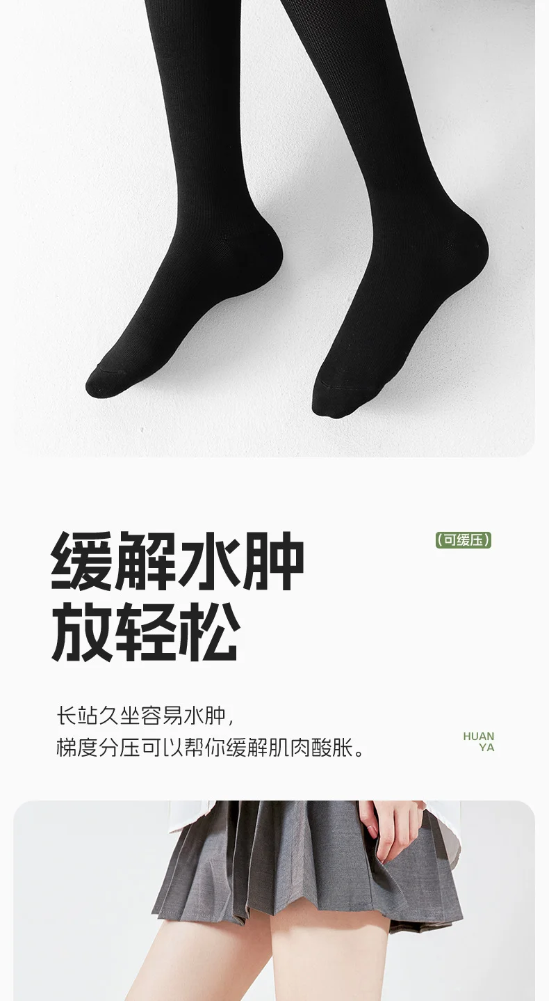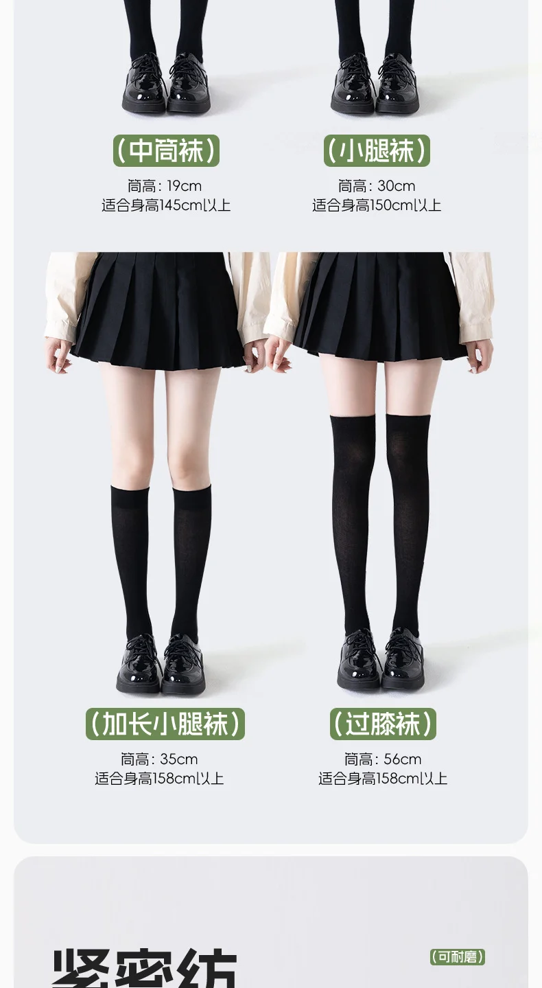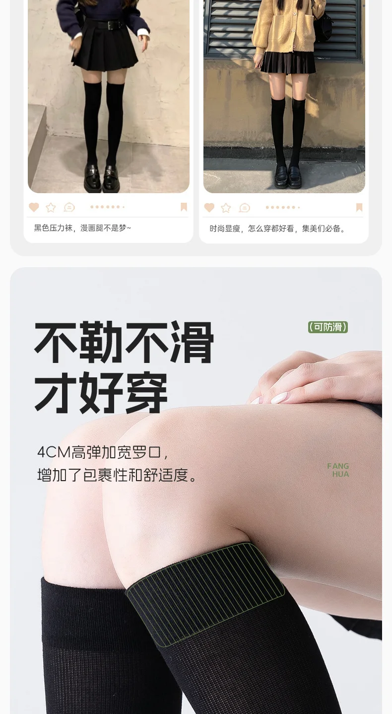 压力小腿袜女春秋强压显jk袜子黑色半截过膝