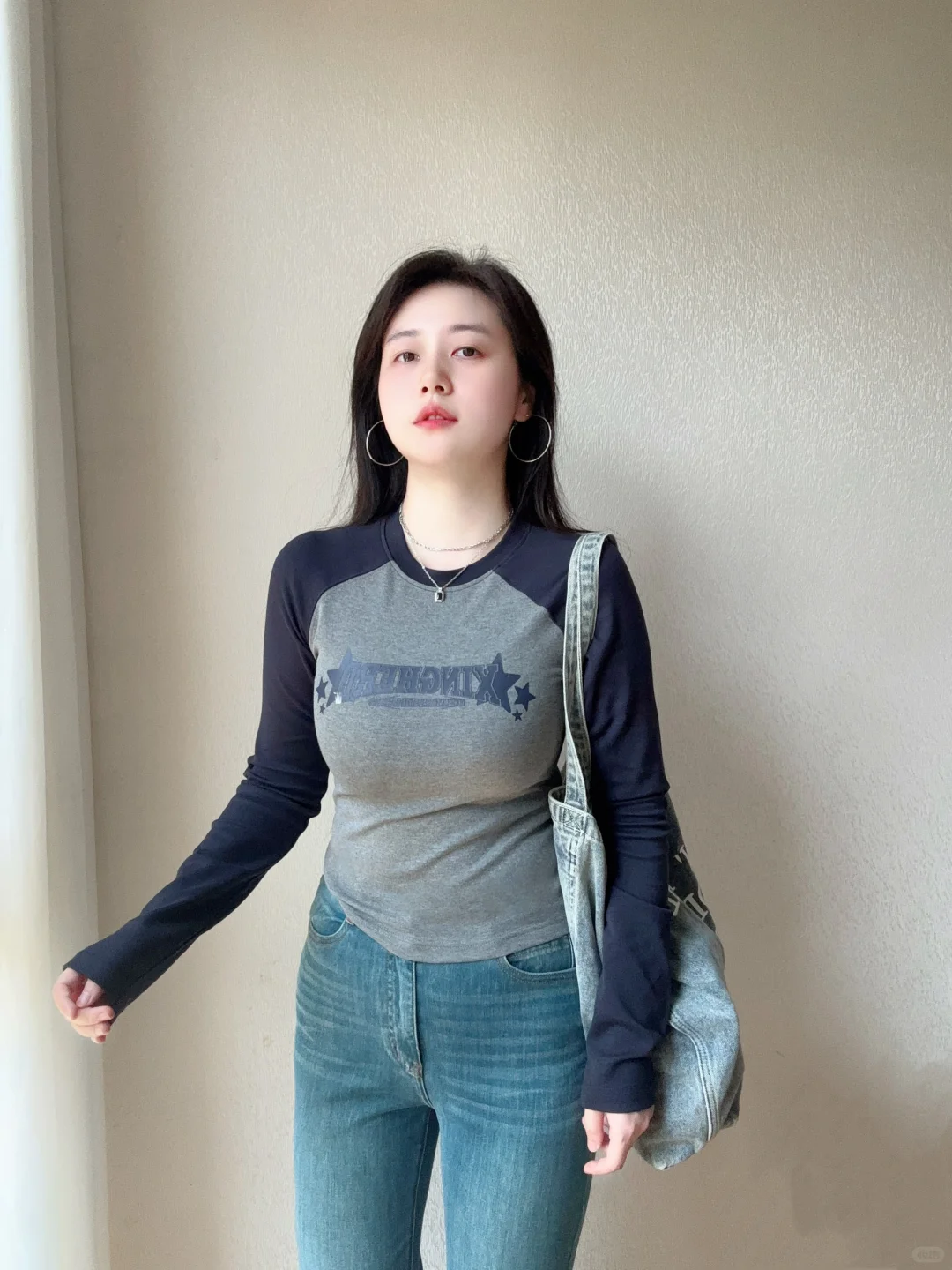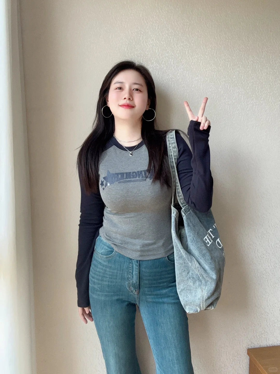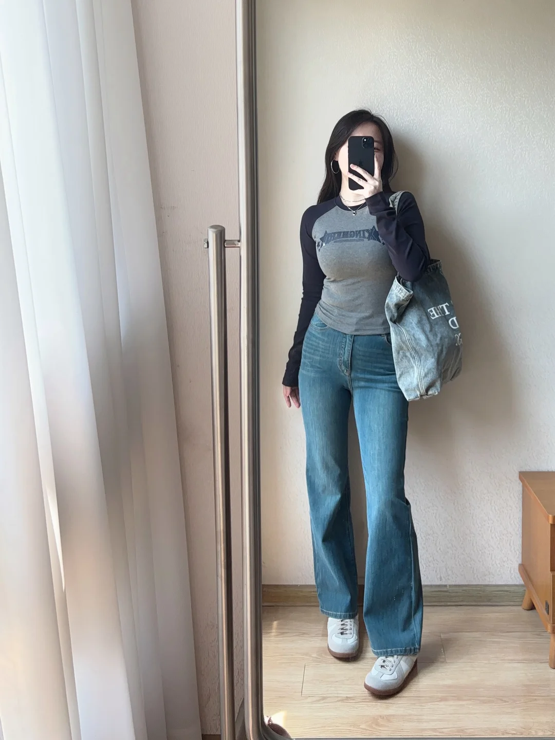 简简单单的插肩T+牛仔裤就很好看呀!超显瘦!