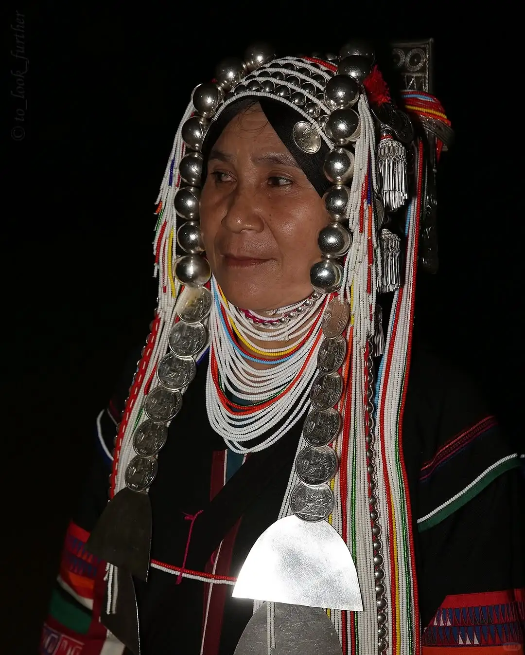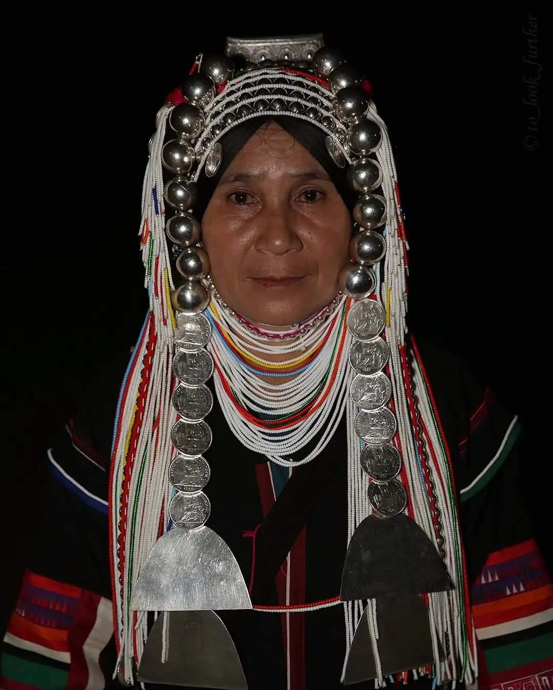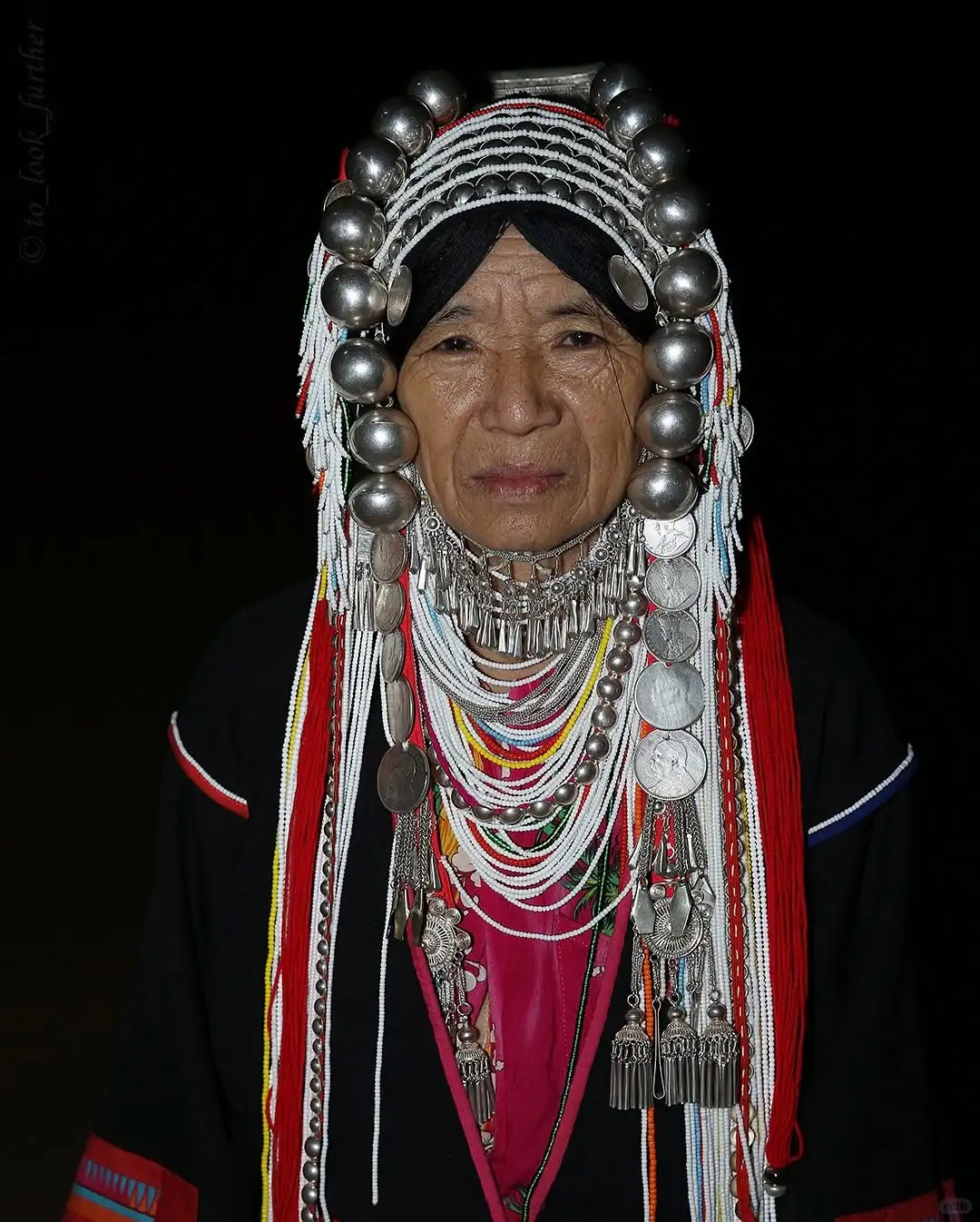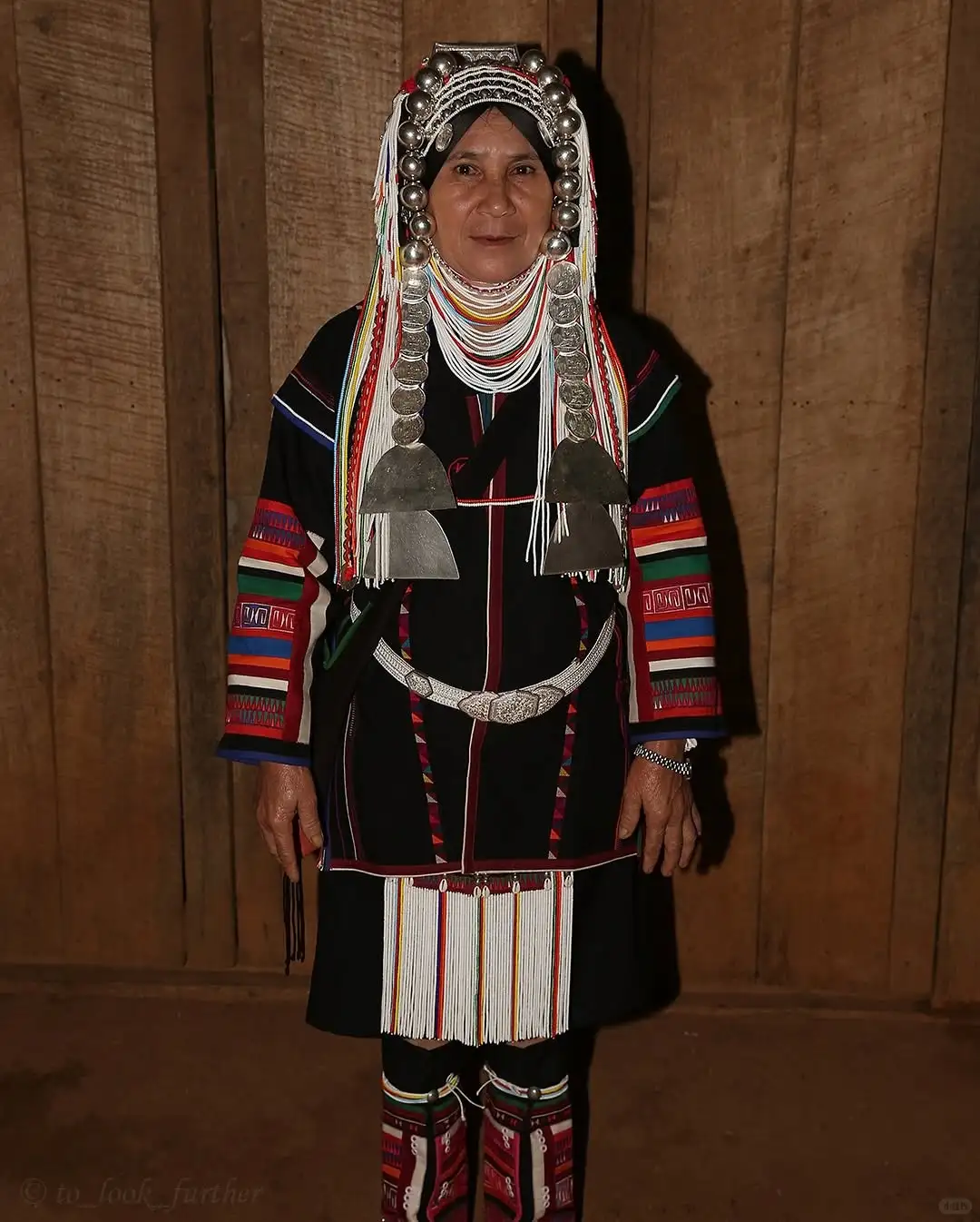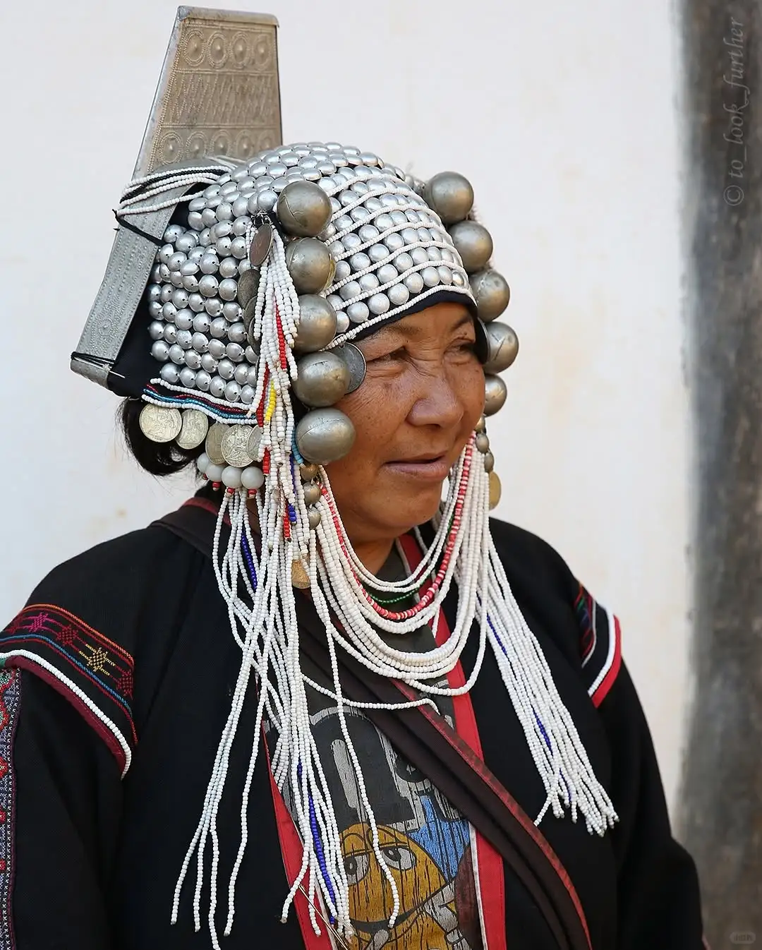 3️⃣ 阿卡·尤洛(U Lo)她们会佩戴锥形头饰,上面装饰银饰、珠子和流苏。