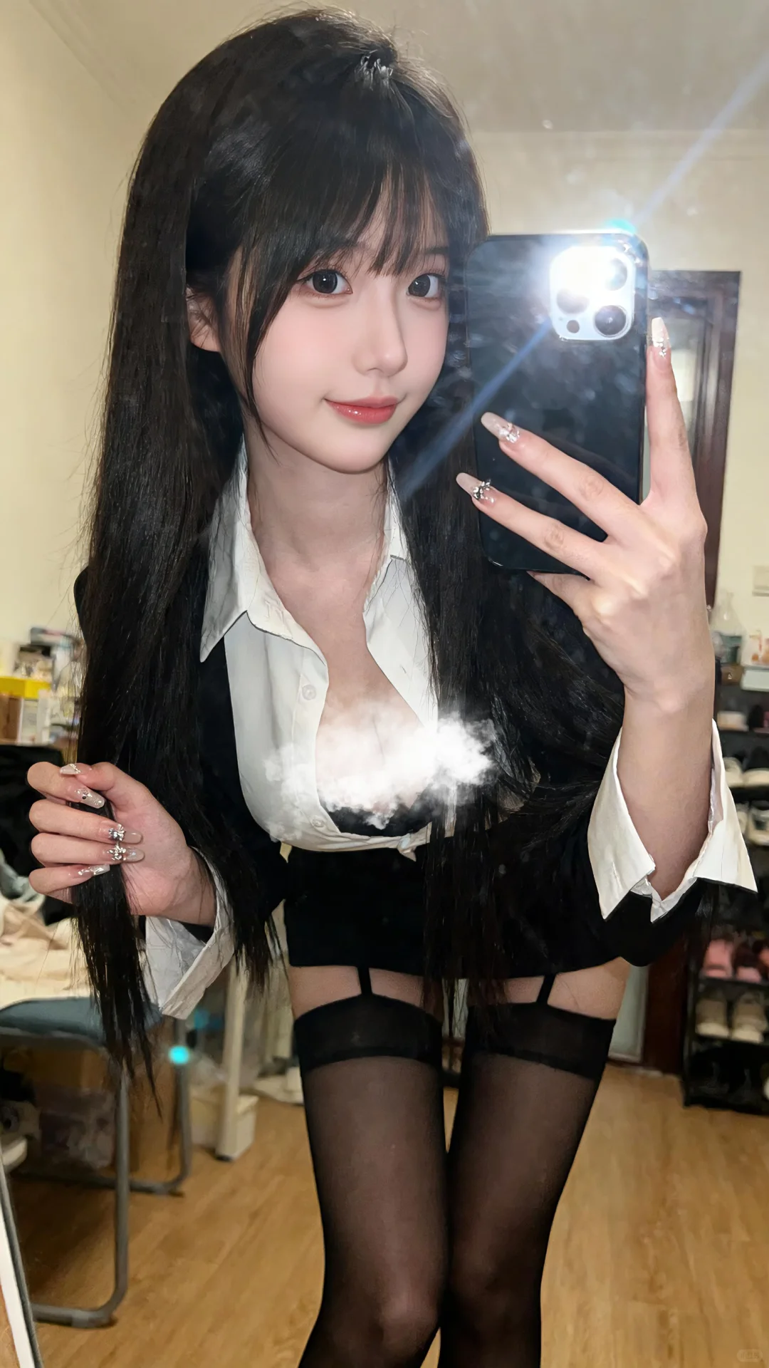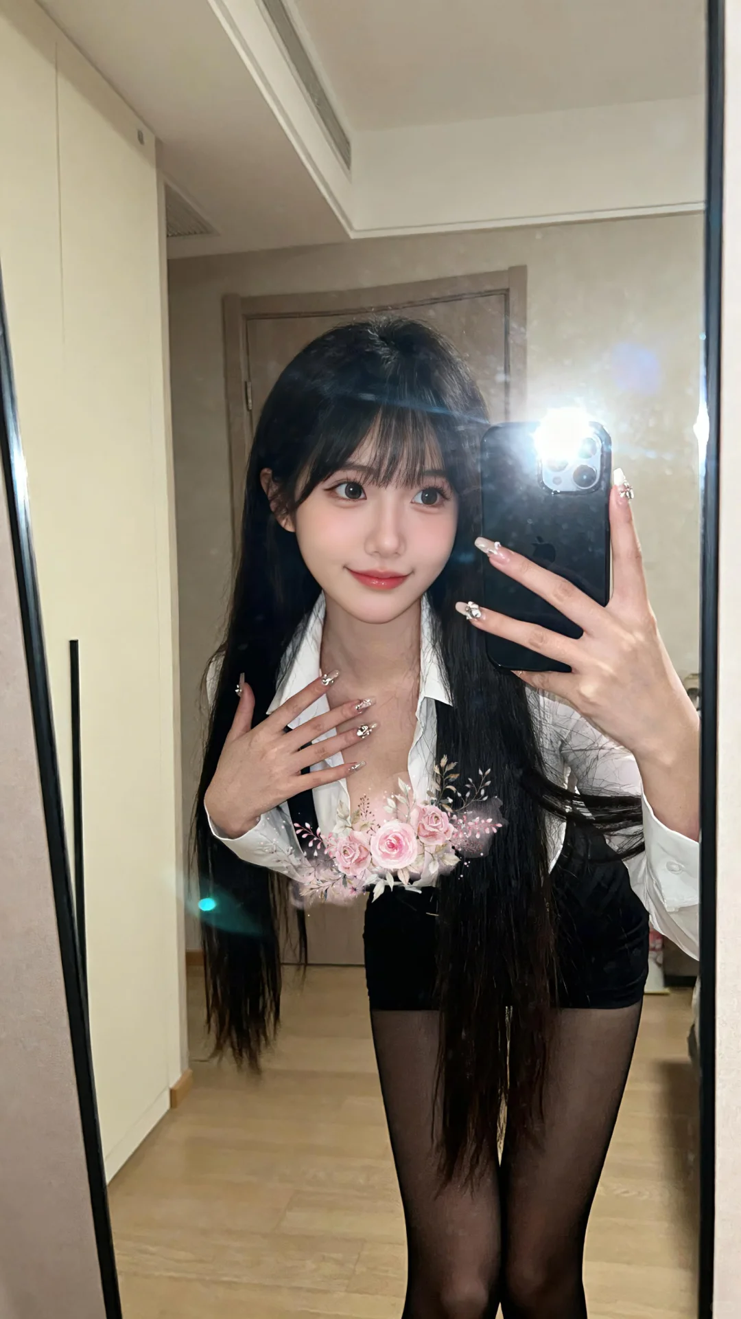 白衬衫简约又有质感,轻松打造干练职场风,细节处尽显精致;黑短裙勾勒出好身材,增添几分性感与俏皮。再搭配黑丝,整体造型又A又飒,无论是上班通勤还是约会逛街,都能轻松hold住,让你成为人群中亮眼的存在✨#可爱在性感面前不值一提 #无不良和低俗暗示正常穿搭 #可爱与性感 #OOTD #日常分享 #ai