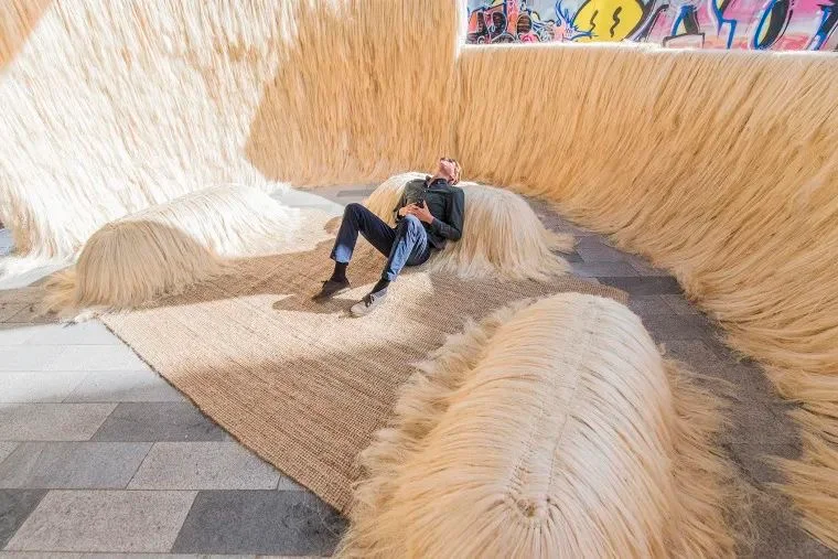 设计的灵感源于使用植物纤维制作日用品的古老技术。非常环保,装置的制作由尤卡坦州的玛雅编织工匠完成,包括剑麻的生产、清洁和染色。是一个很有挑战的项目。